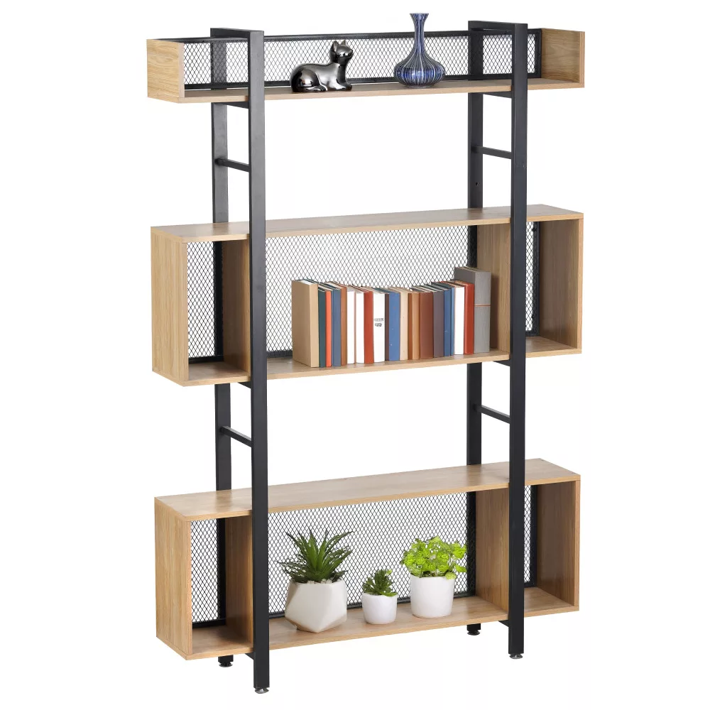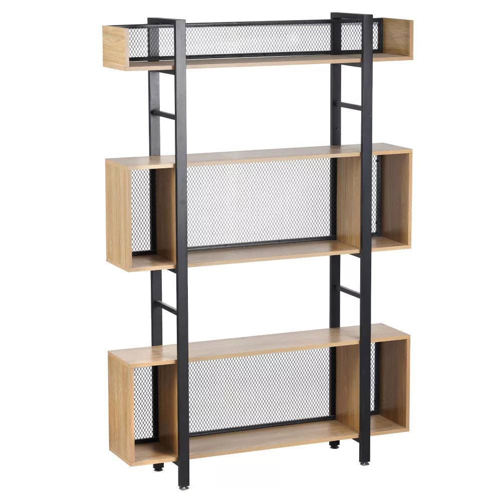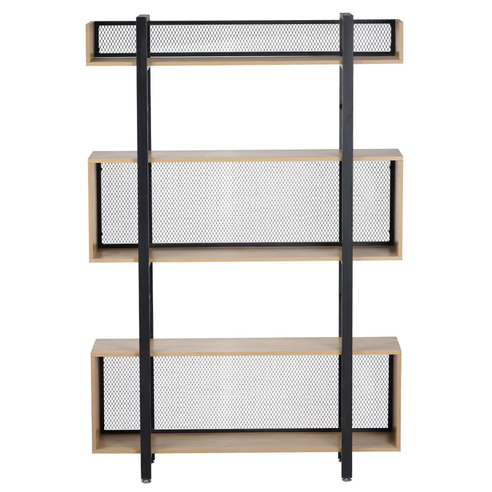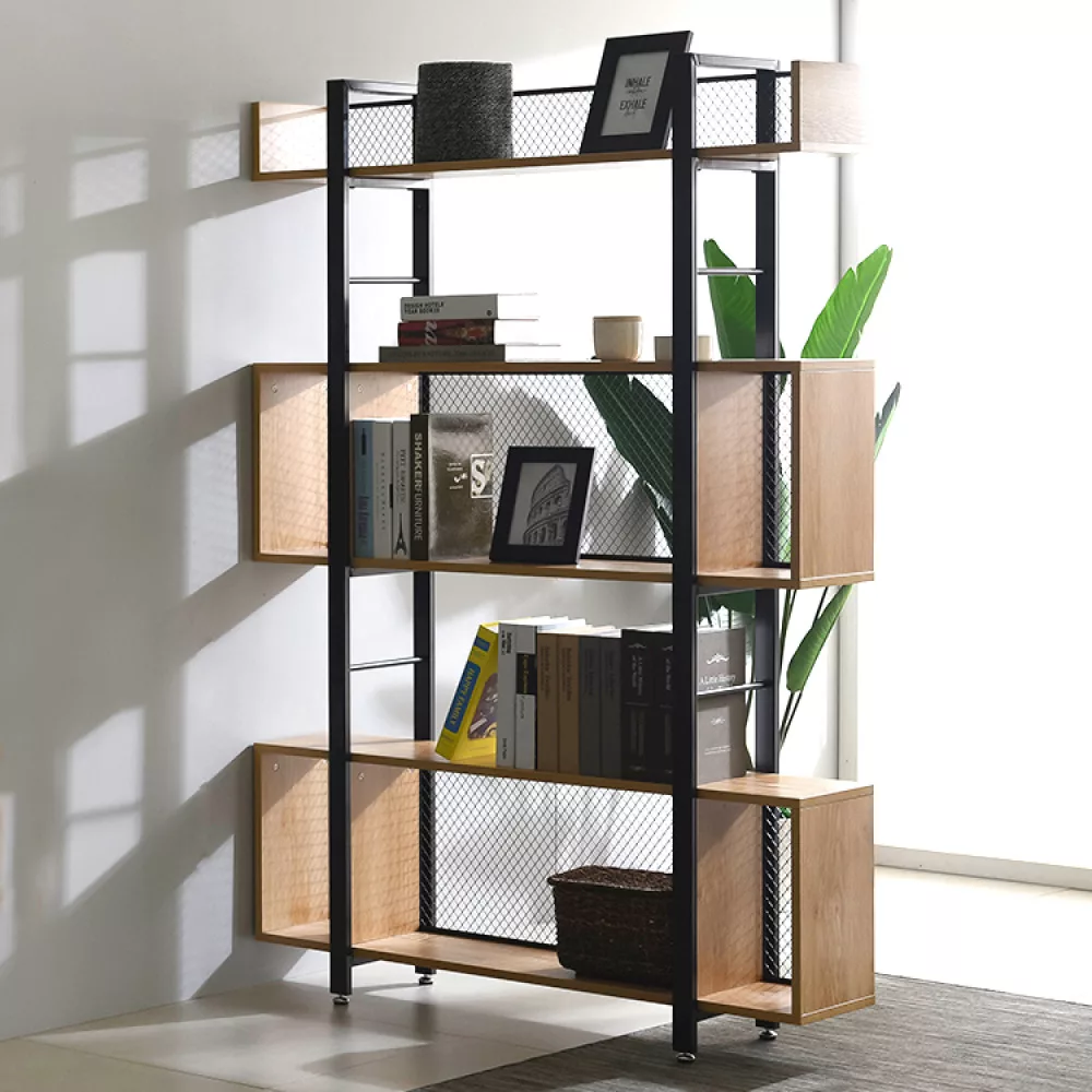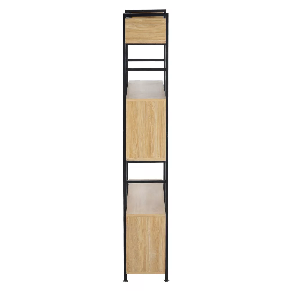 A polcállvány stabilitását a masszív, fekete fém szerkezet adja, amely olyan különleges lábakkal végződik, amelyekkel könnyedén kiegyenlítheted a padló egyenletlenségeit. A robusztus vázat öt, laminált MDF-ből készült, tölgy hatású polc egészíti ki, amelyek természetes és meleg benyomást keltenek. Az állvány hátulját egy diszkrét, de ízléses fekete fémháló szegélyezi, ami nemcsak a szerkezetet erősíti, hanem a dizájn szerves részét is képezi. A KILIS NEW TYP 3 sokoldalúságát mutatja, hogy fehér és színes falak mellett egyaránt jól mutat, és tökéletesen harmonizál a természetes árnyalatú bútorokkal.
