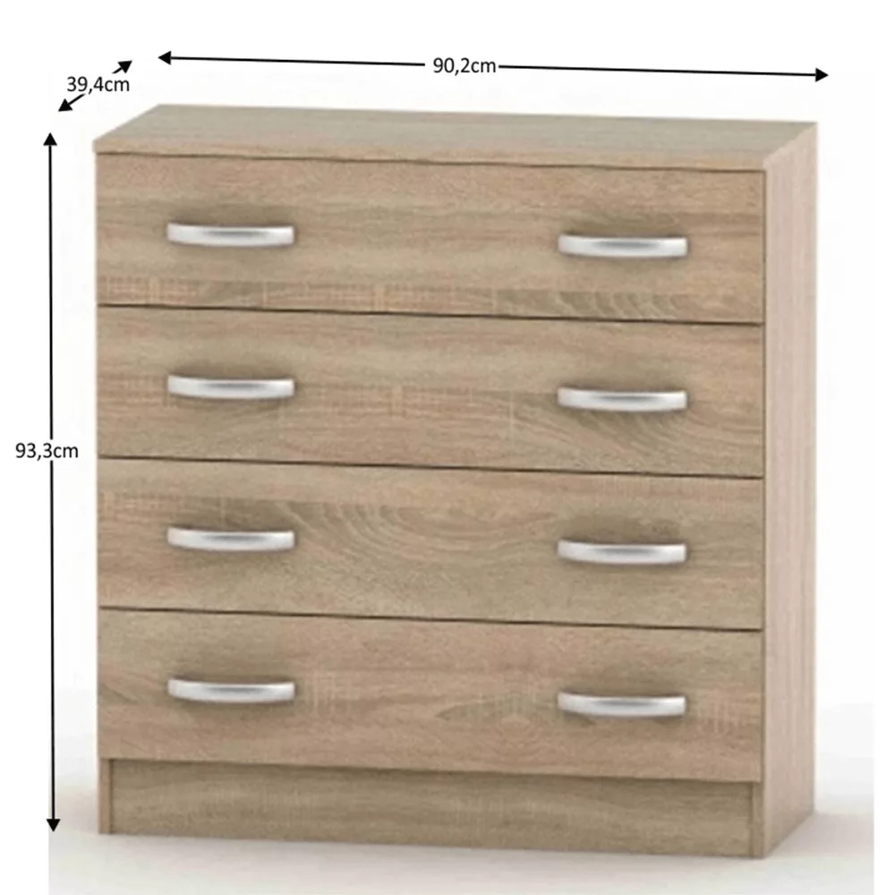 A 16 mm vastagságú korpusz stabilitást és hosszú élettartamot biztosít, így ez a bútordarab hosszú távon hű társad lesz a rendszerezésben. A négy fiók bőséges helyet nyújt, lehetővé téve, hogy mindennek meglegyen a maga helye, ezzel hozzájárulva a vizuális rendhez és a belső nyugalomhoz.