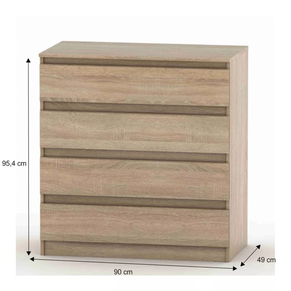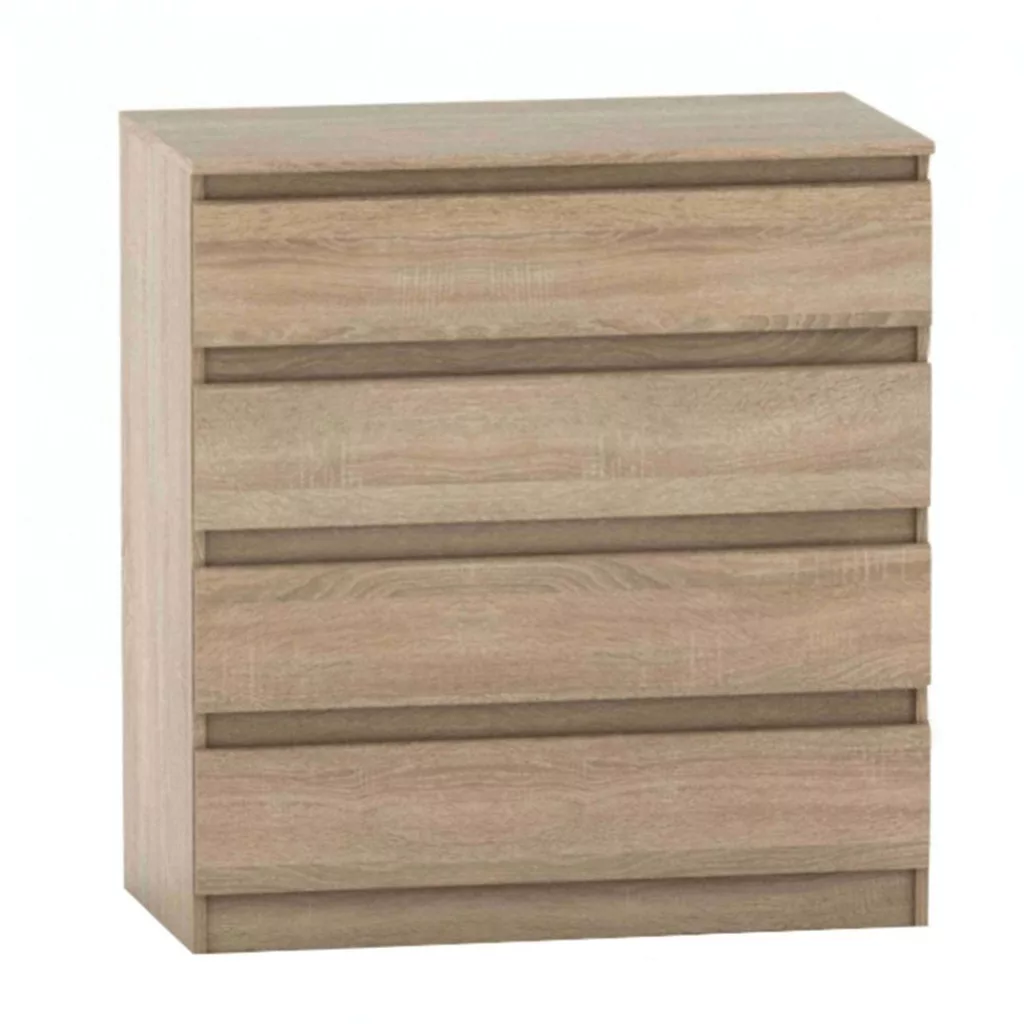 A rendezett otthon alapja a tudatos tárolás, ahol minden tárgynak megvan a maga helye. A HANY NEW 004 fiókos szekrény a rend és a stílus tökéletes egyensúlyát hozza el otthonodba. A népszerű sonoma tölgy színben készült, minőségi laminált faforgácslapból, és négy tágas fiókkal kínál praktikus és esztétikus tárolási lehetőséget a mindennapokra.