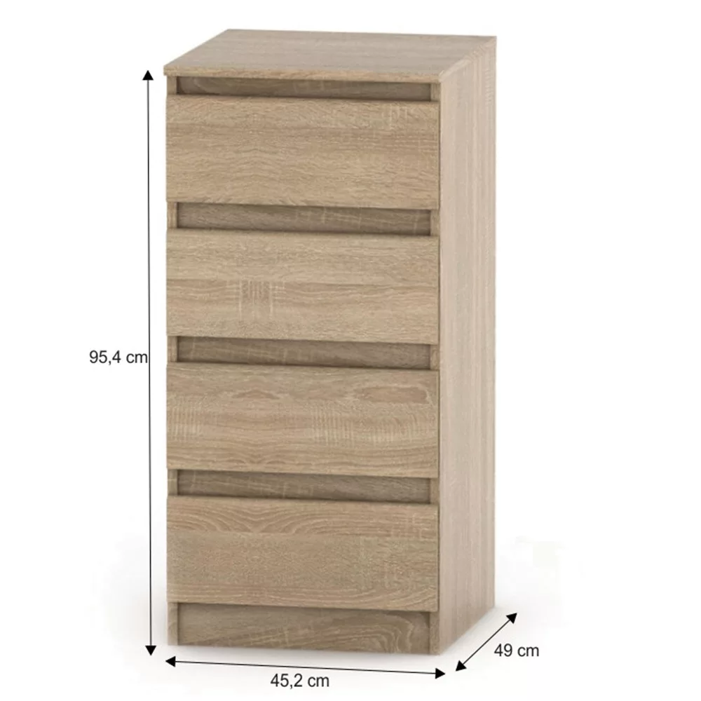 A rendezett és harmonikus otthon alapja a tudatosan megtervezett tárolás. A HANY NEW 009 komód ebben nyújt Neked megbízható és esztétikus megoldást. Ez a négyfiókos, letisztult vonalvezetésű, sonoma tölgy színű bútor nem csupán egy tárolóeszköz, hanem otthonod dísze is lehet, amely tökéletesen illeszkedik a környezetébe.