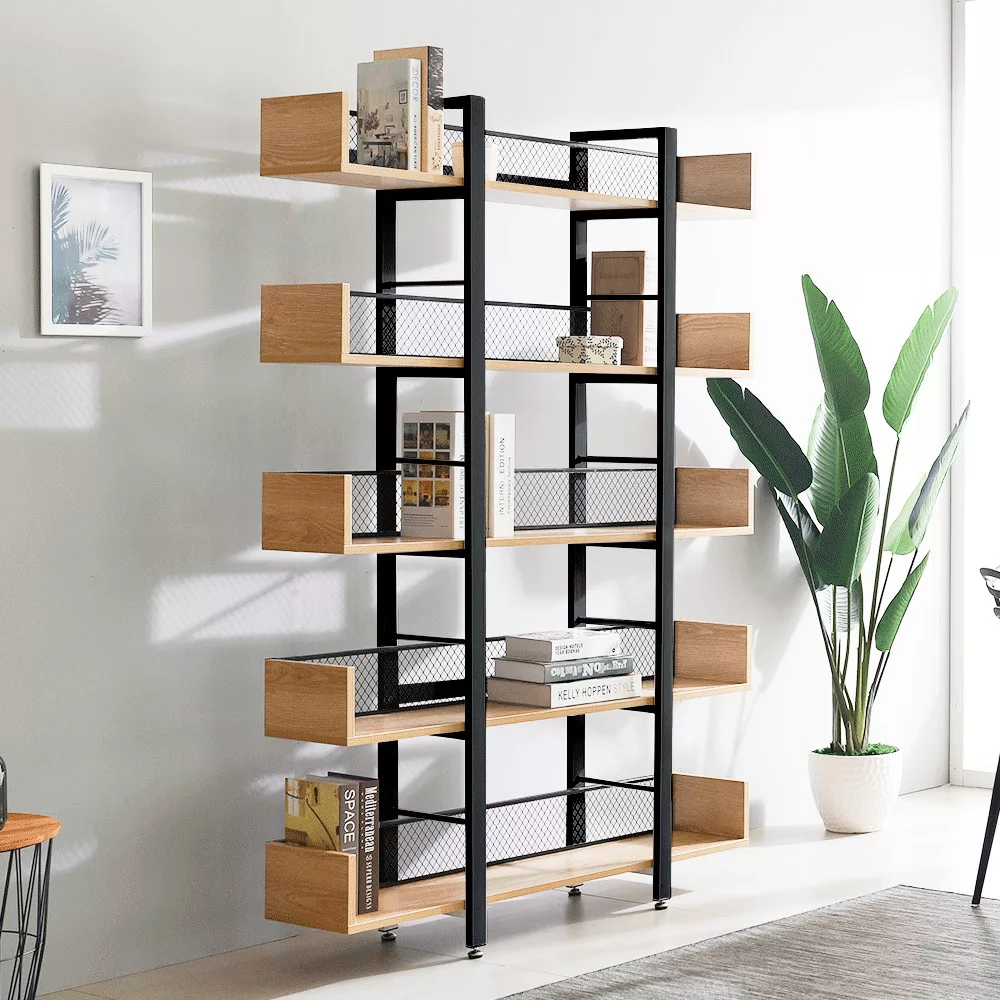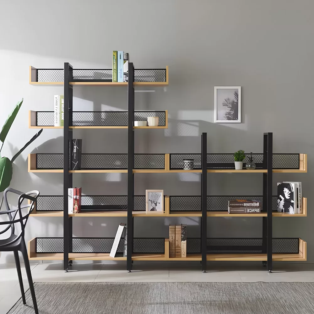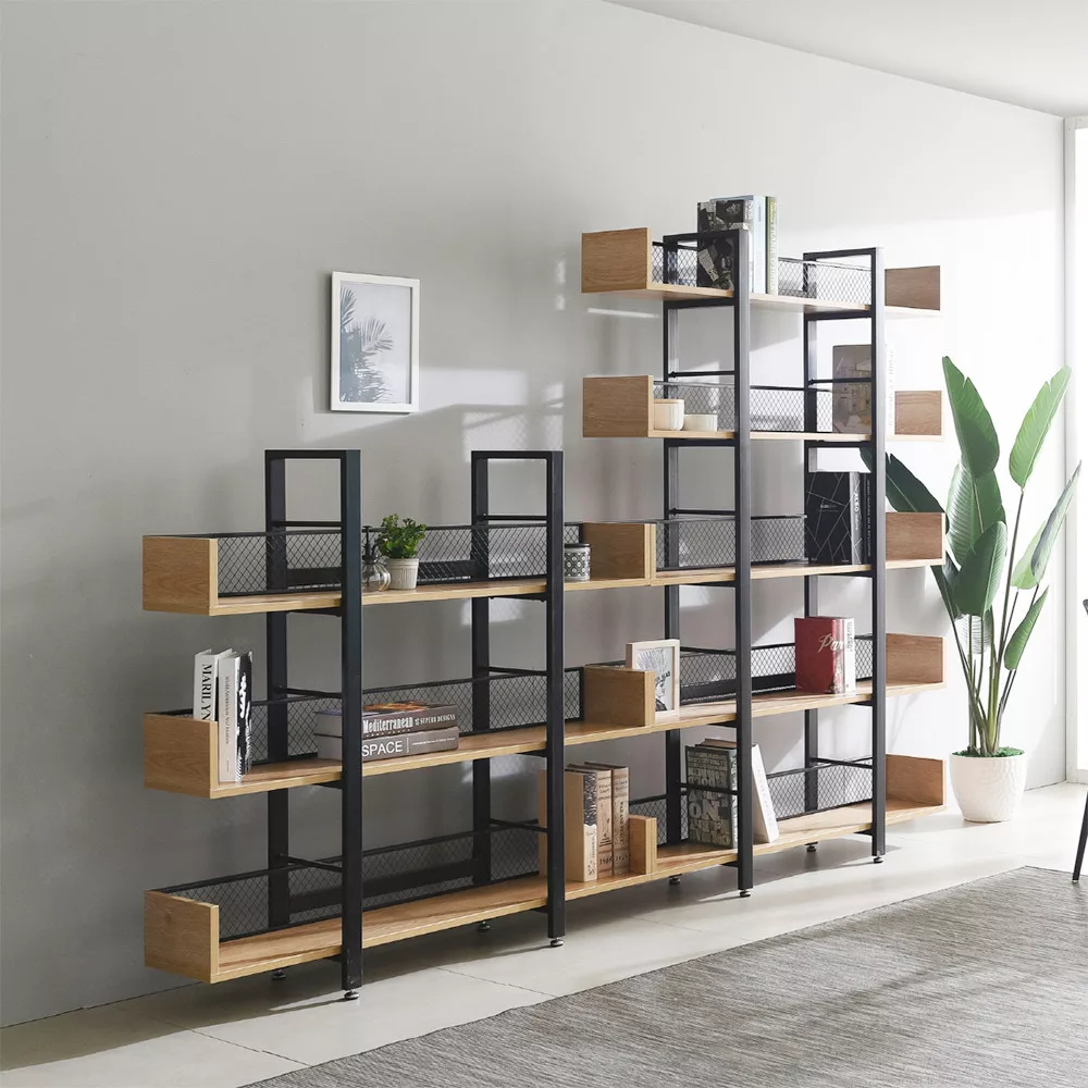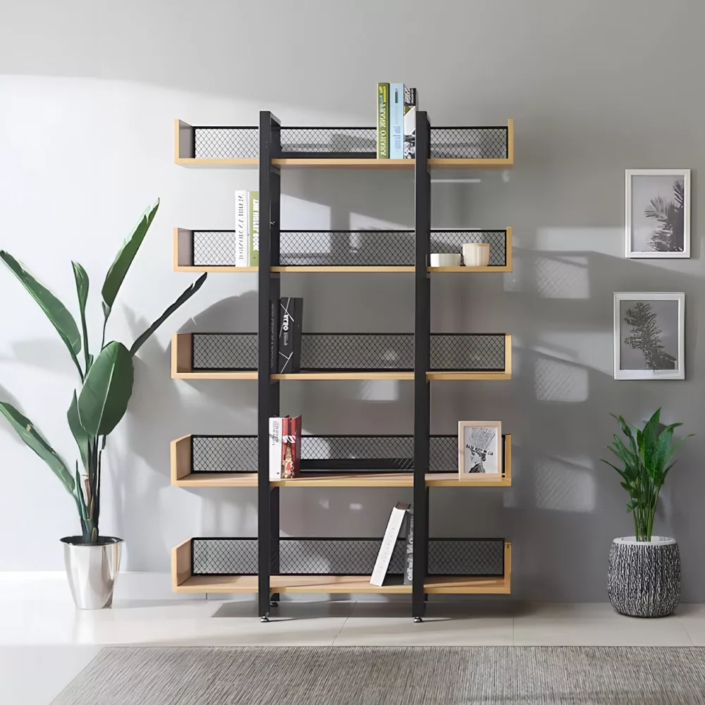 A KILIS NEW TYP 2 egy olyan sokoldalú polcrendszer, amelynek masszív, fekete fém szerkezete és a meleg tónusú, tölgy kivitelű laminált MDF polcai közötti kontraszt azonnal megragadja a tekintetet. Az öt tágas polc bőséges helyet kínál könyveid, növényeid vagy legkedvesebb dekorációid számára, míg a hátoldalon végigfutó fekete fémháló nemcsak megerősíti a szerkezetet, hanem egyedi vizuális elemet is kölcsönöz a bútornak. Ez a megoldás ideális választás lehet akár egy hangulatos kávézó vagy egy tematikus étterem belső terének kialakításához is.