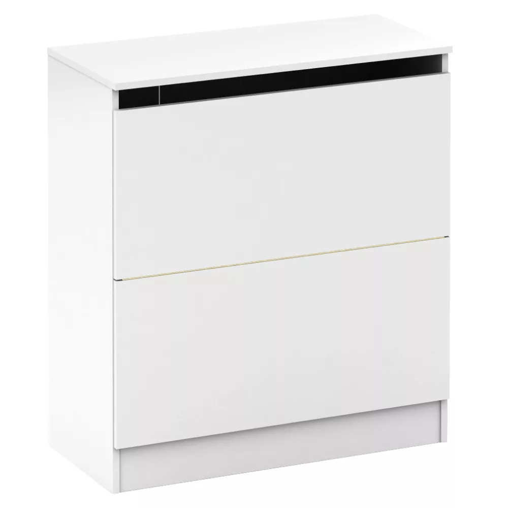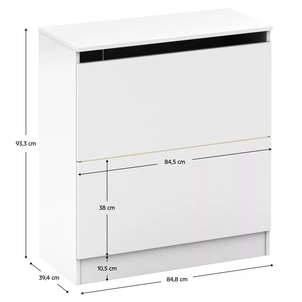 A modern, minimalista dizájn és a tiszta fehér szín optikailag növeli a teret, és világos, szellős érzetet kelt, ami elengedhetetlen a pihentető környezet megteremtéséhez. A bútortest stabil, 16 mm vastagságú váza garantálja a tartósságot, miközben a lenyíló ajtós kialakítás könnyű és diszkrét hozzáférést biztosít a benne tárolt ruhákhoz és személyes tárgyakhoz. Ez a ruhás komód nem csupán egy esztétikus bútordarab, hanem egy átgondolt tárolási megoldás, amely segít rendet tartani a legfontosabb személyes teredben.