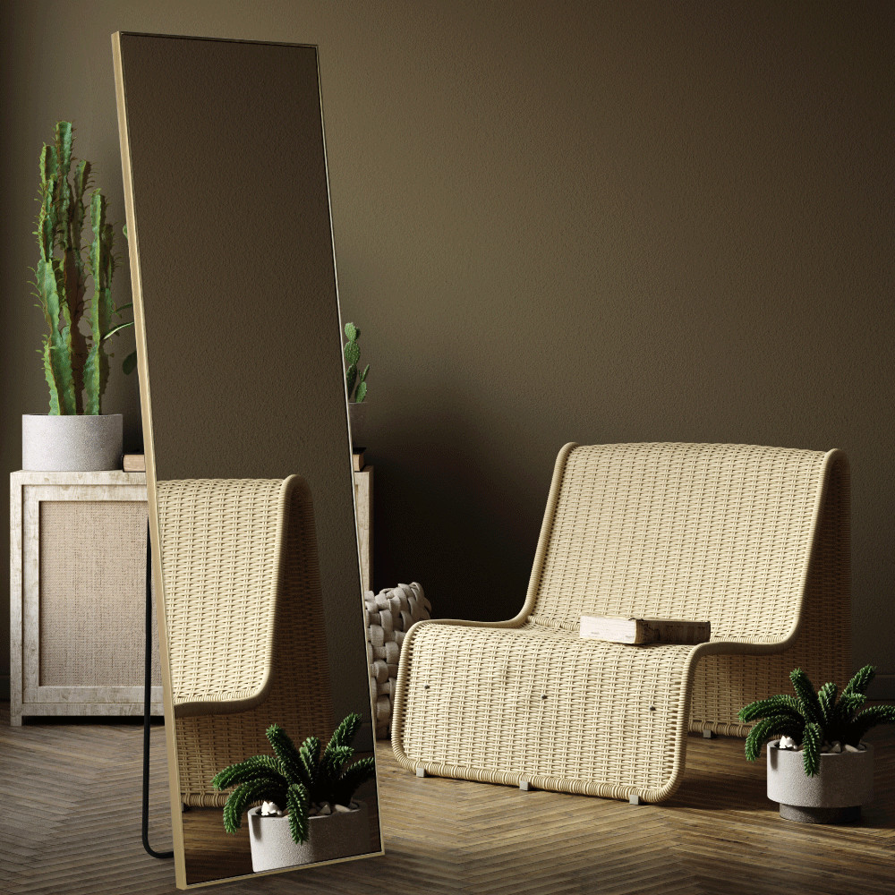 Az elegáns arany álló tükör, mint a tér stílusformáló eleme