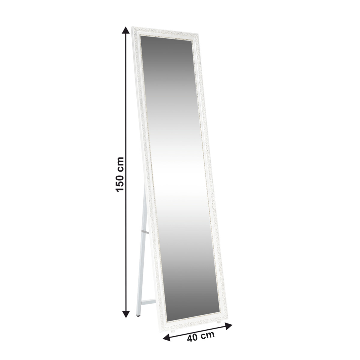 Egy jól megválasztott tükör nem csupán praktikus kiegészítő, hanem a térérzet és a fényviszonyok tudatos alakítója is. Segítségével tágasabbá, világosabbá teheted otthonod bármely szegletét, miközben egyedi stílusjegyekkel gazdagítod a környezeted. A LAVAL álló tükör ezt a kettős funkciót hivatott betölteni, melynek fehér színű, fakeretét finom arany díszítés teszi különlegessé. A stabilitásról egy masszív érc állvány gondoskodik, míg a 40x150 cm-es méret ideális arányokat teremt a legtöbb helyiségben.