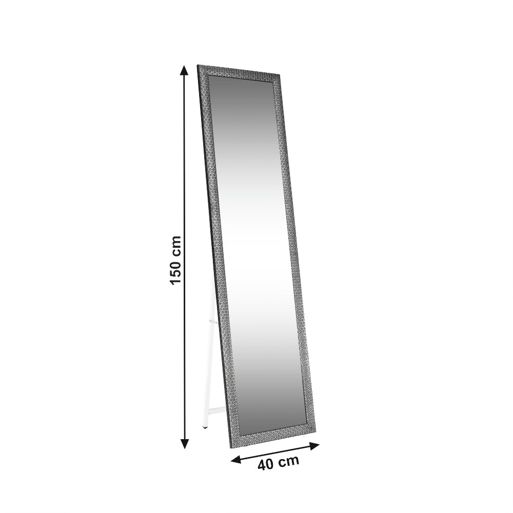 A LAVAL álló tükörrel a letisztult formatervezés és a funkcionalitás tökéletes harmóniáját ismerheted meg. A masszív, fehér érc állvány stabil tartást biztosít, míg a kontrasztos, fekete fa keret időtlen eleganciát sugároz. A 40x150 cm-es méretnek köszönhetően teljes alakos képet nyújt, így a reggeli készülődés során ideális piperetükör funkciót is betölt. A kiváló minőségű ezüst tükör foncsorozás torzításmentes, tiszta tükörképet garantál. A fekete és fehér színek klasszikus kettőse bármilyen enteriőrbe könnyedén beilleszthető, letisztultsága pedig nyugalmat és rendezettséget sugall.