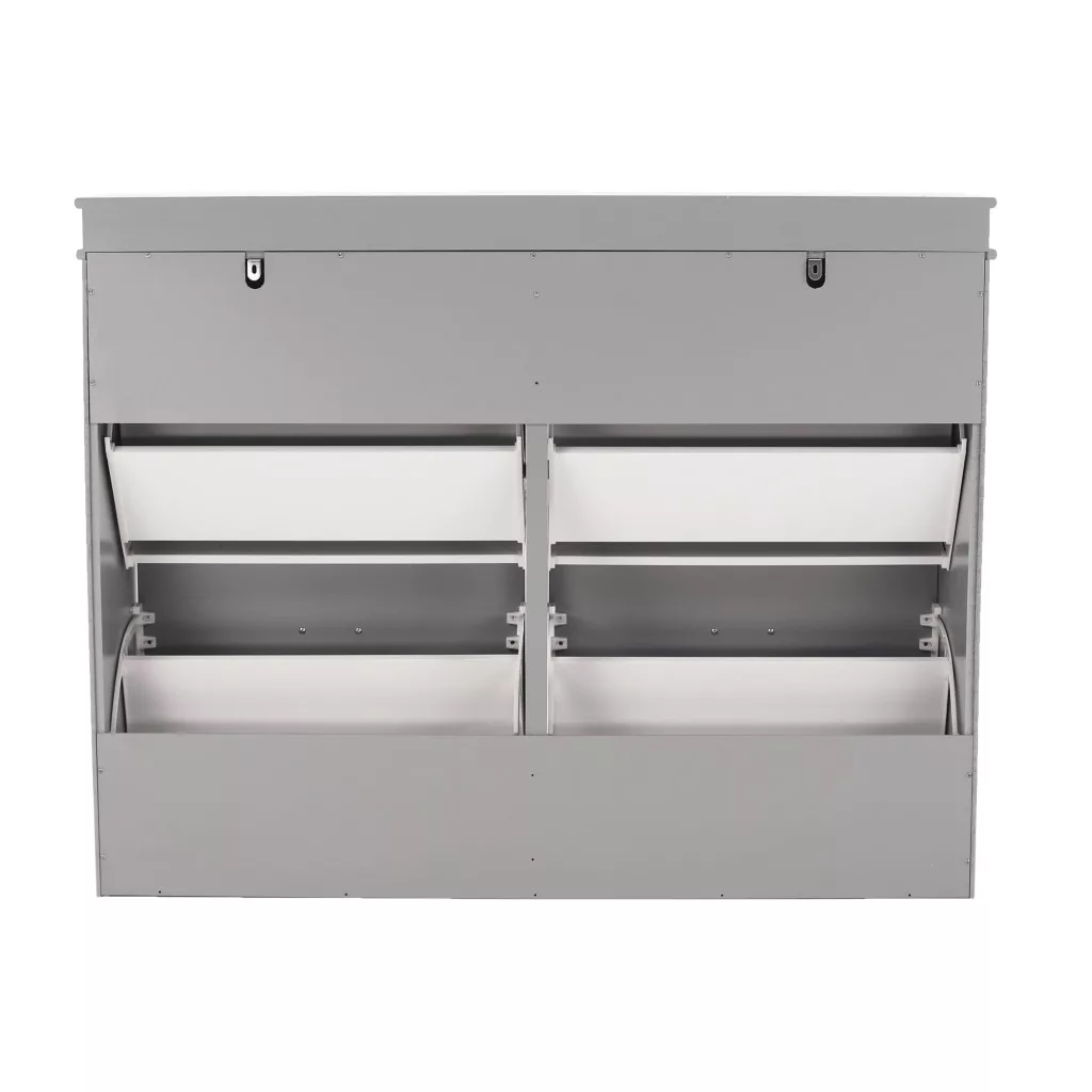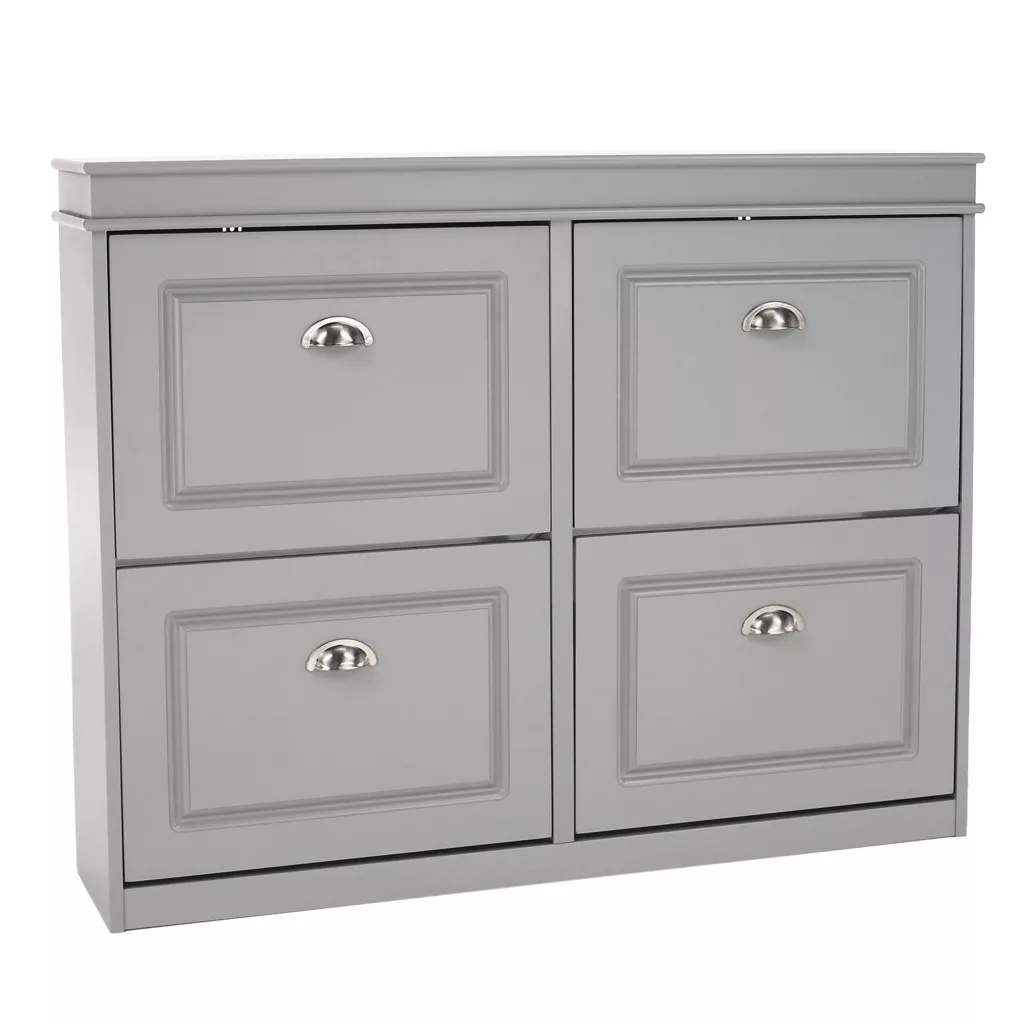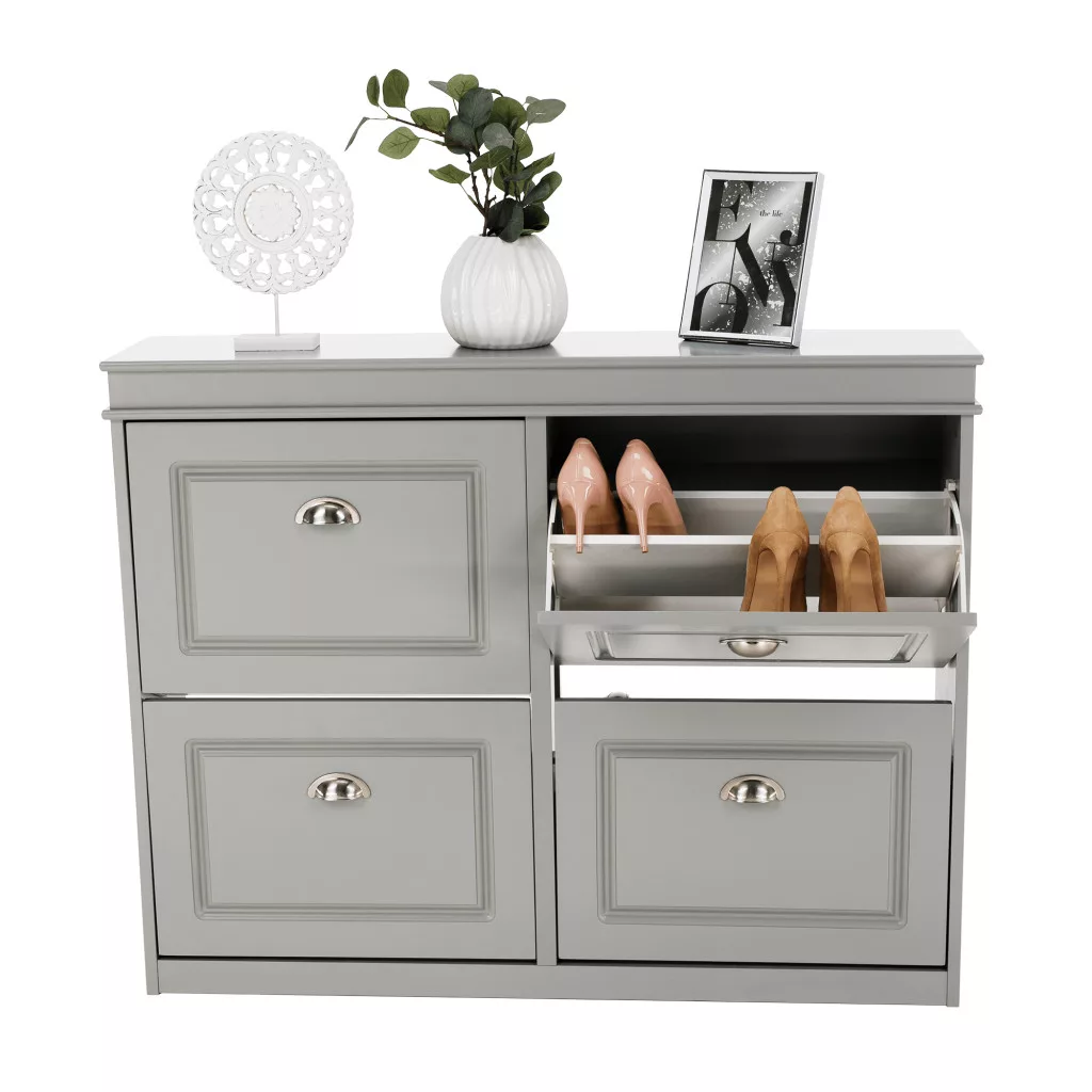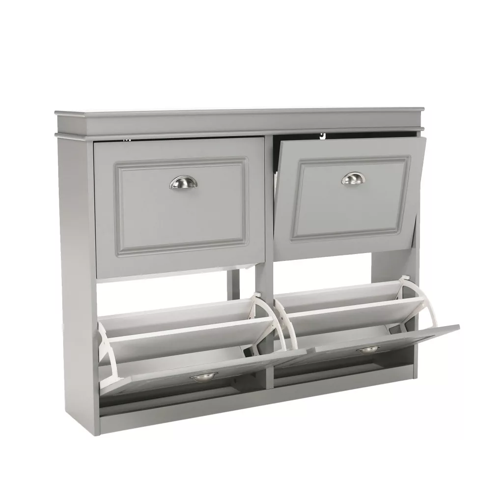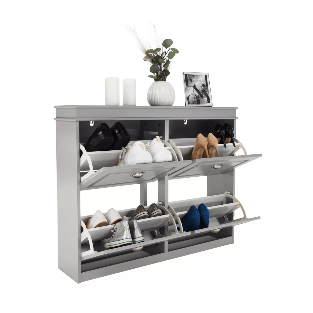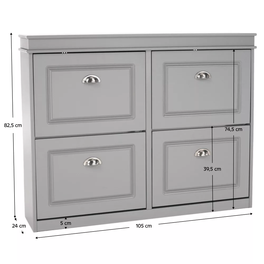 A két tágas, billenthető fiók praktikus és helytakarékos tárolást biztosít, így ez az előszobai cipőtároló ideális választás lehet szűkebb folyosókra is. Letisztult, megunhatatlan dizájnja és kompakt, 24 cm-es mélysége gondoskodik róla, hogy ne csak egy egyszerű cipőspolc vagy cipős állvány legyen, hanem az előszoba stílusos, funkcionális eleme is. A szekrény belső kialakítása lehetővé teszi, hogy cipőid rendezetten, átláthatóan és portól védve várják a következő használatot.