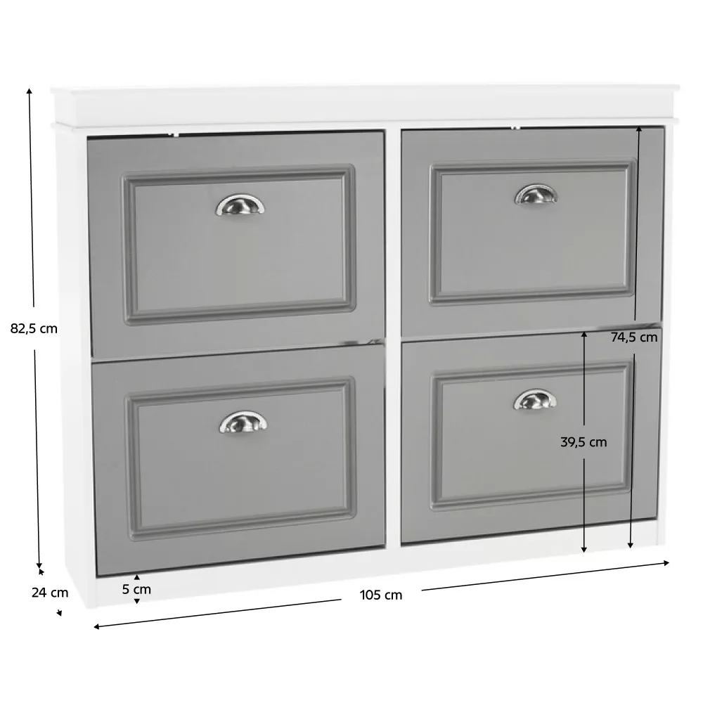 Ez a megunhatatlan dizájnnal rendelkező cipőtartó két tágas, billenthető fiókjában biztosít elegendő helyet lábbelijeid számára, megóvva őket a portól és a sérülésektől. Kompakt, 24 cm-es mélységének köszönhetően keskenyebb folyosókon is ideális megoldást kínál, anélkül, hogy elvenné a teret a közlekedőtől. A stabil szerkezet és a minőségi anyaghasználat garantálja a hosszú élettartamot, így ez a cipős állvány hosszú távú befektetés otthonod rendezettségébe.