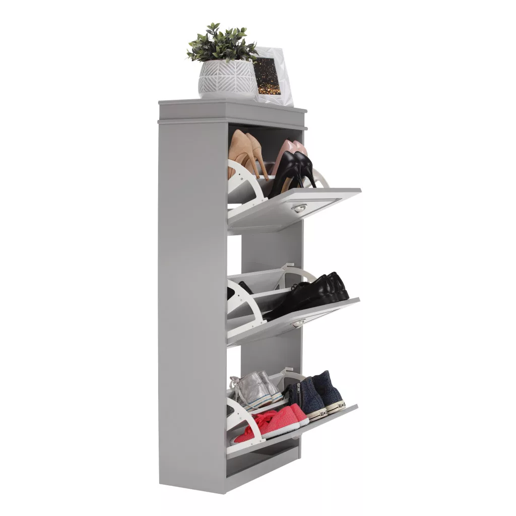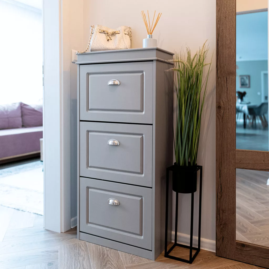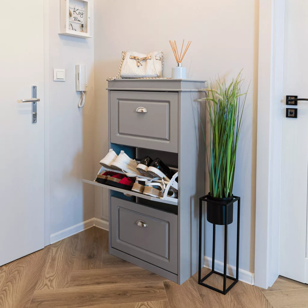 Az előszoba az otthonod névjegye, az első benyomás, amely vendégeidet és Téged is fogad. A rendezetlenség és a szétszórt lábbelik azonban könnyen lerombolhatják ezt a harmóniát. Ismerd meg a SEBER TYP 2 cipősszekrényt, egy elegáns és helytakarékos megoldást, amely rendet teremt. Ez a modern, három billenthető fiókkal rendelkező bútor forgácslapból és MDF-ből készült, időtálló szürke színben, hogy tökéletesen illeszkedjen a legtöbb enteriőrbe.