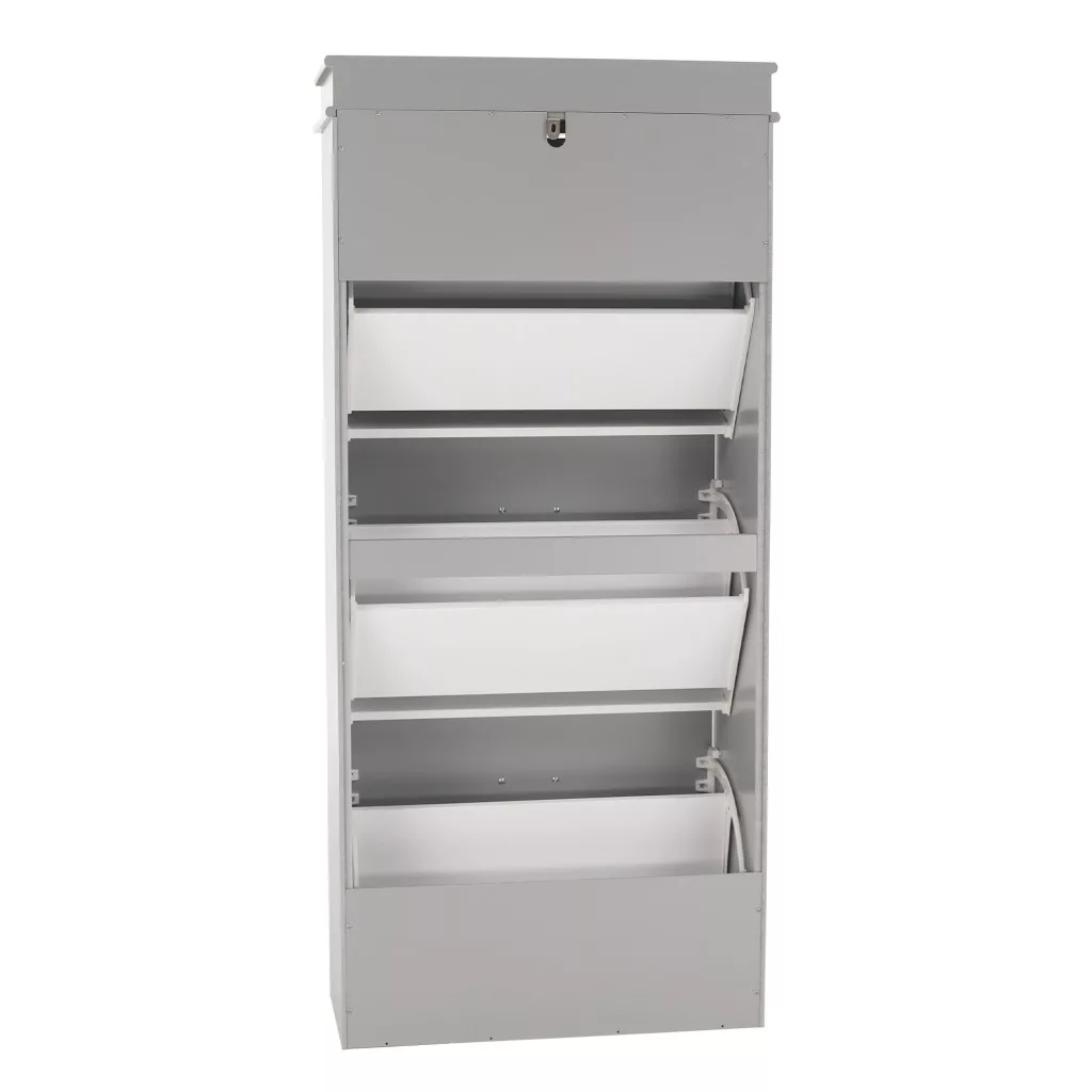 A SEBER TYP 2 megunhatatlan dizájnja túlmutat egy egyszerű tárolóbútoron. A hagyományos, nyitott cipőspolc vagy cipős állvány megoldásokkal szemben ez a zárt rendszerű előszobai cipőtároló elrejti a lábbeliket, letisztult és egységes megjelenést biztosítva a térnek. A három, praktikusan billenő rekesz összesen akár 12 pár cipő számára biztosít helyet, így a szezonális és a napi használatban lévő darabok is kényelmesen elférnek, védve a portól és a szem elől.