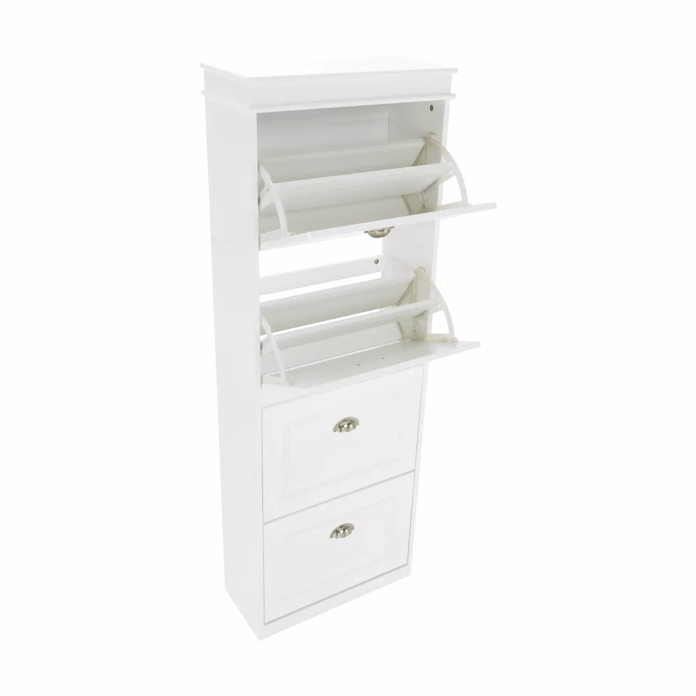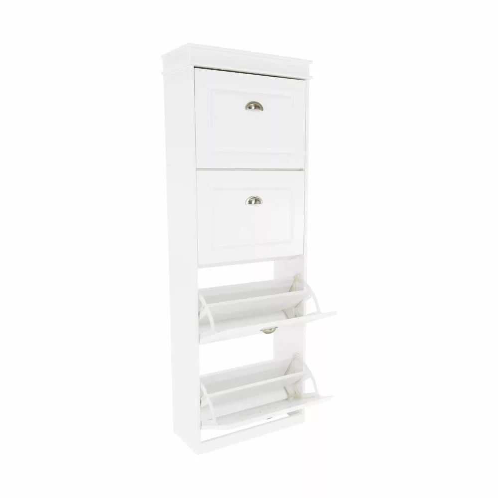 Ismerd meg a SEBER TYP 3 elnevezésű cipősszekrényt, amely a funkcionalitást és a letisztult dizájnt ötvözi. Ez a karcsú, fehér színű bútordarab tartós MDF és forgácslap kombinációjából készült, négy praktikus, billenthető fiókjával pedig bőséges helyet kínál lábbelijeid rendezett tárolására. Megunhatatlan dizájnjának és időtálló megjelenésének köszönhetően szinte bármilyen stílusú enteriőrbe könnyedén beilleszthető, a minimalistától a modernig.