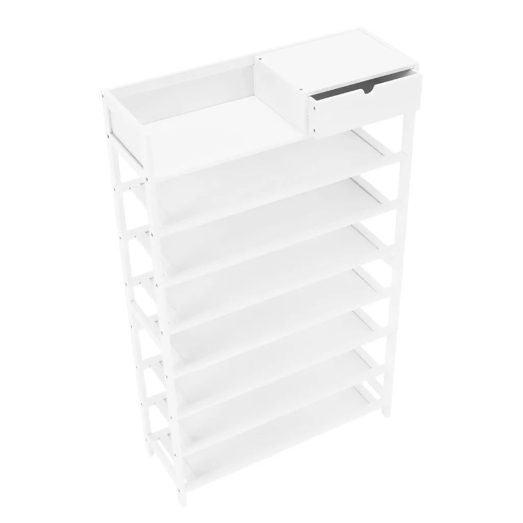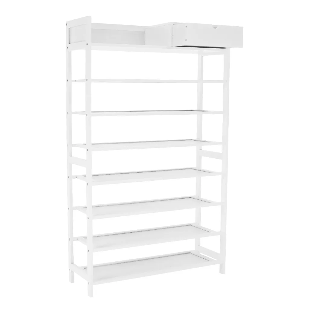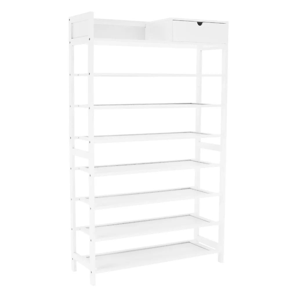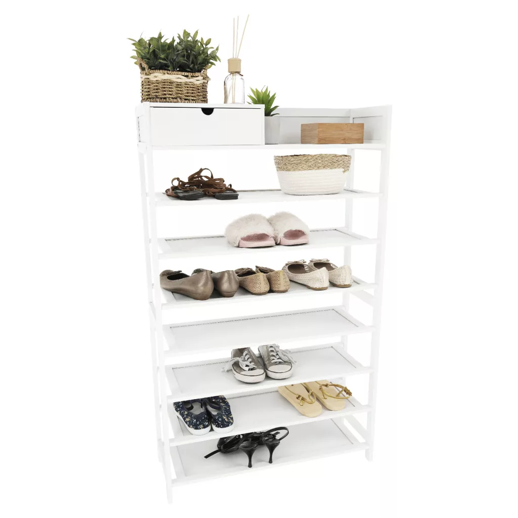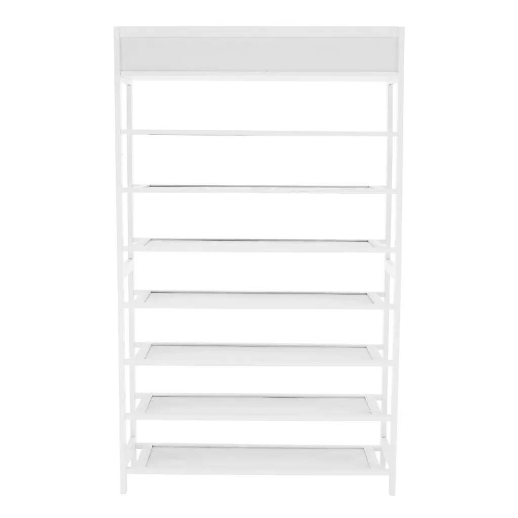 A KATLEY cipőspolc egy ilyen tudatos választás, amely elegáns és átlátható megoldást kínál előszobádba, előcsarnokodba vagy akár a gardróbodba. Ez a lakkozott bambuszból készült, letisztult fehér színű cipős állvány könnyedén illeszkedik bármilyen enteriőrbe. A 7 tágas polcon átláthatóan rendszerezheted a cipőidet és egyéb kiegészítőidet, amelyeket mindig kéznél szeretnél tartani.