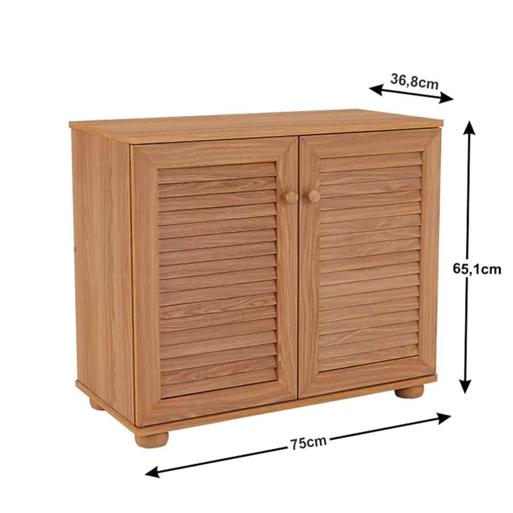 A natúr színvilágú ajtók meleg, barátságos hangulatot kölcsönöznek bármelyik előtérnek, miközben letisztult formavilága harmonikusan illeszkedik a legtöbb lakberendezési stílushoz. A duplaajtós kialakítás diszkréten rejti el a lábbeliket, azonnal rendezettebbé téve a teret. A belső térben három polc biztosít bőséges helyet több pár cipő számára, így ez a kompakt cipős állvány segít abban, hogy minden cipődnek meglegyen a maga helye, évszaktól függetlenül.