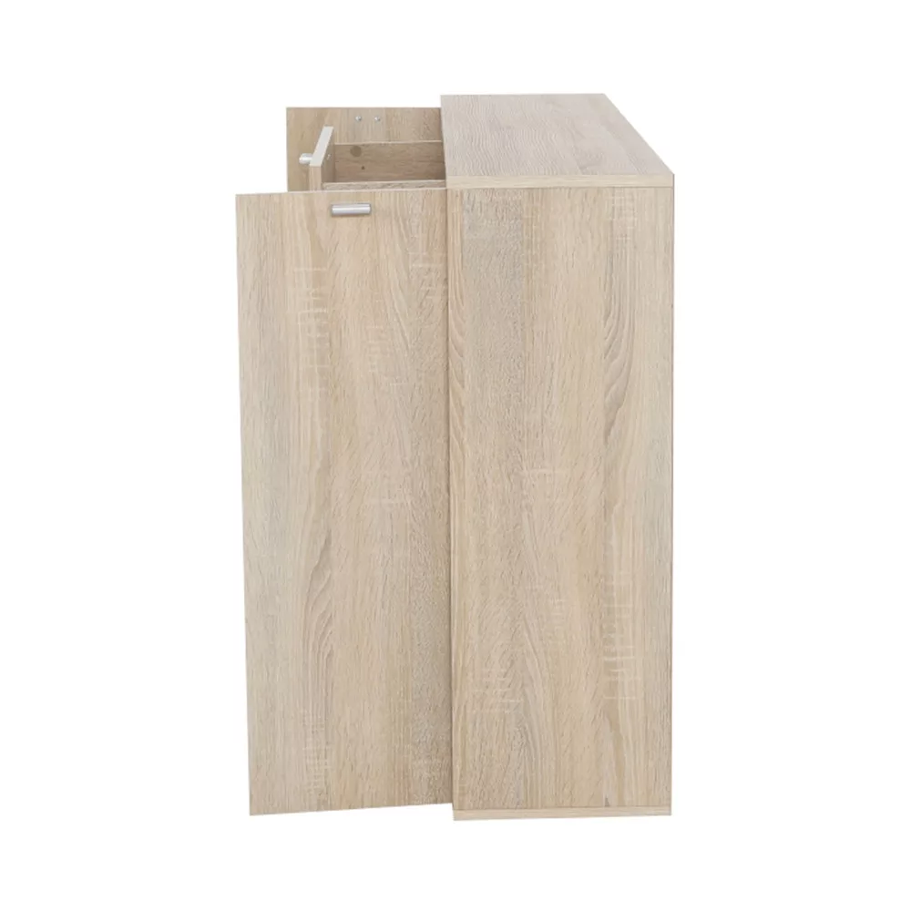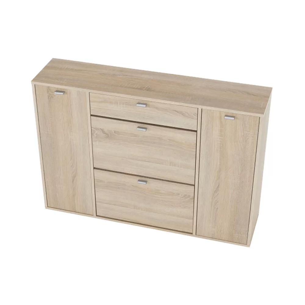 Ismerd meg az ANABELA cipősszekrényt, amely a romantikus név mögött egy rendkívül átgondolt és modern bútordarabot rejt. Ez a kellemes sonoma tölgy színvilágú, tartós laminált DTD-ből készült előszobai cipőtároló 120x28x85 cm-es méretével tágas, mégis helytakarékos megoldást kínál. A minőségi szlovák termék eleganciáját a letisztult vonalvezetés és a funkcionális belső kialakítás tökéletes harmóniája adja.
