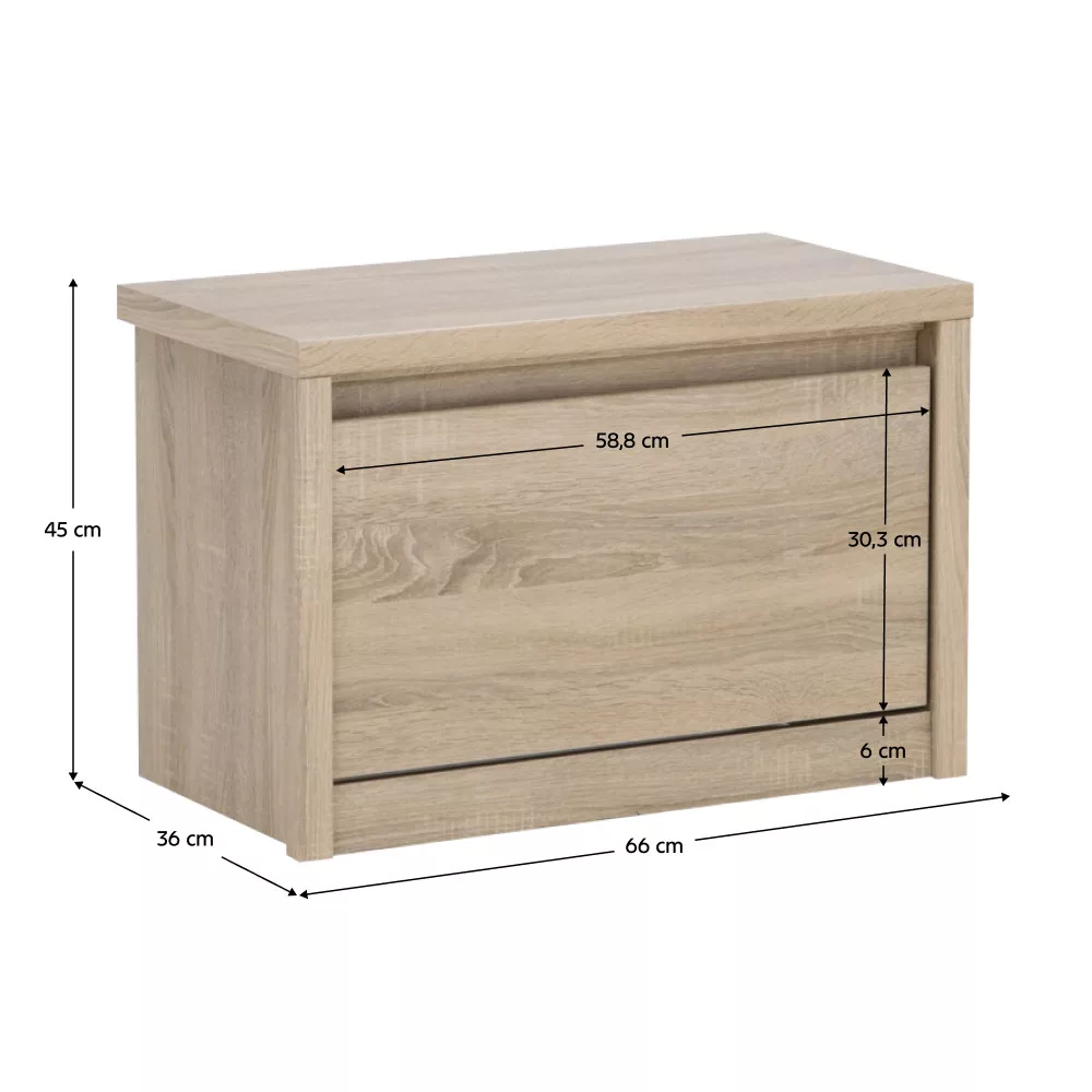 Az előszoba otthonod névjegye, az első benyomás tere, ahol a külvilág zaja és a belső béke találkozik. Egy átgondolt és rendezett fogadótér megteremtése kulcsfontosságú a harmonikus hangulat eléréséhez, amelyhez egy praktikus előszobai cipőtároló elengedhetetlen. Ez a sonoma tölgy színű, laminált DTD lapból készült cipőtartó tökéletesen ötvözi a klasszikus megjelenést a modern igényekkel. Kompakt, 66x36x45 cm-es méreteinek köszönhetően kisebb terekben is ideális megoldást nyújt a rend fenntartására.