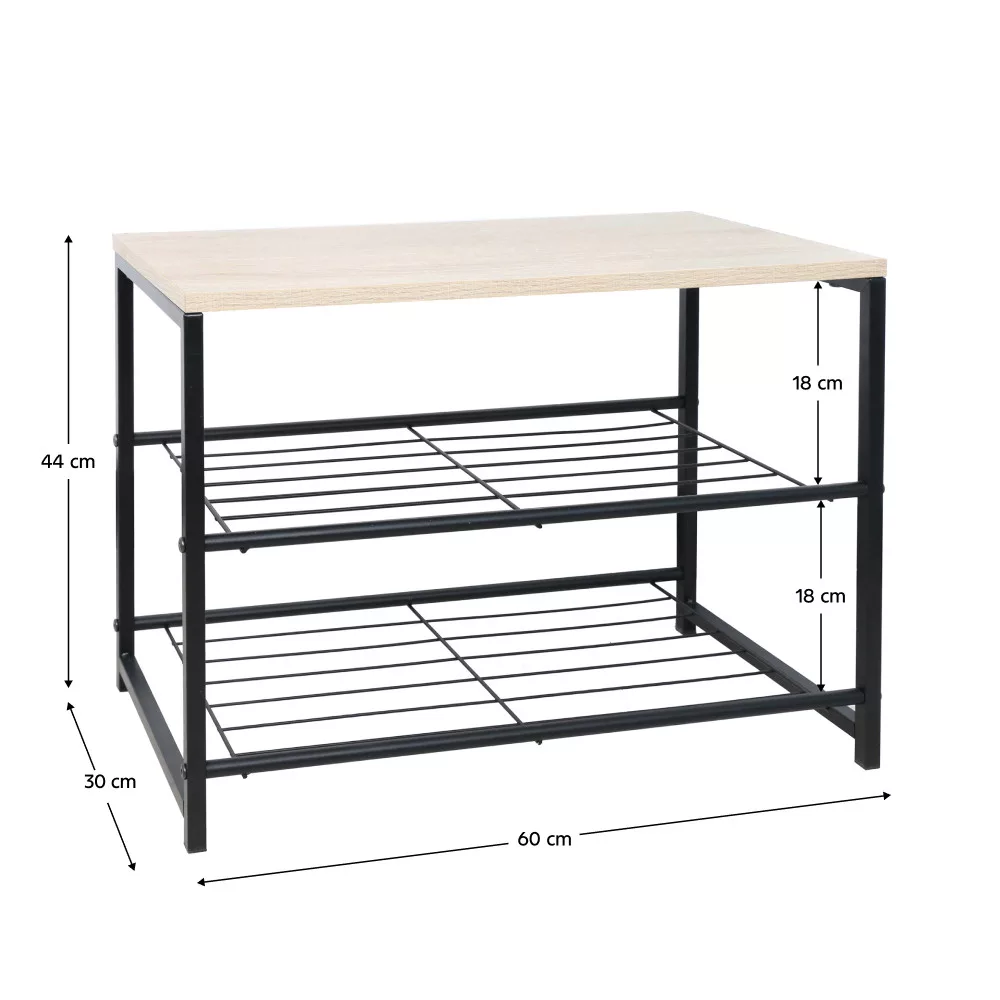 A minimalista, mégis meleg hangulatú dizájn lehetővé teszi, hogy ez a sokoldalú cipős állvány szinte bármilyen enteriőrbe könnyedén beilleszkedjen. A két tágas, rácsos polc ideális a lábbelik szellős tárolására, megelőzve a kellemetlen szagok kialakulását, míg a felső, tömör falap praktikus felületet biztosít a mindennapi tárgyak, például kézitáskák, kulcsok vagy akár egy dísznövény elhelyezésére. Ez a bútordarab többet nyújt egy egyszerű cipősszekrénynél; egy átgondolt tárolási megoldás, amely segít a mindennapi rutinod egyszerűsítésében.