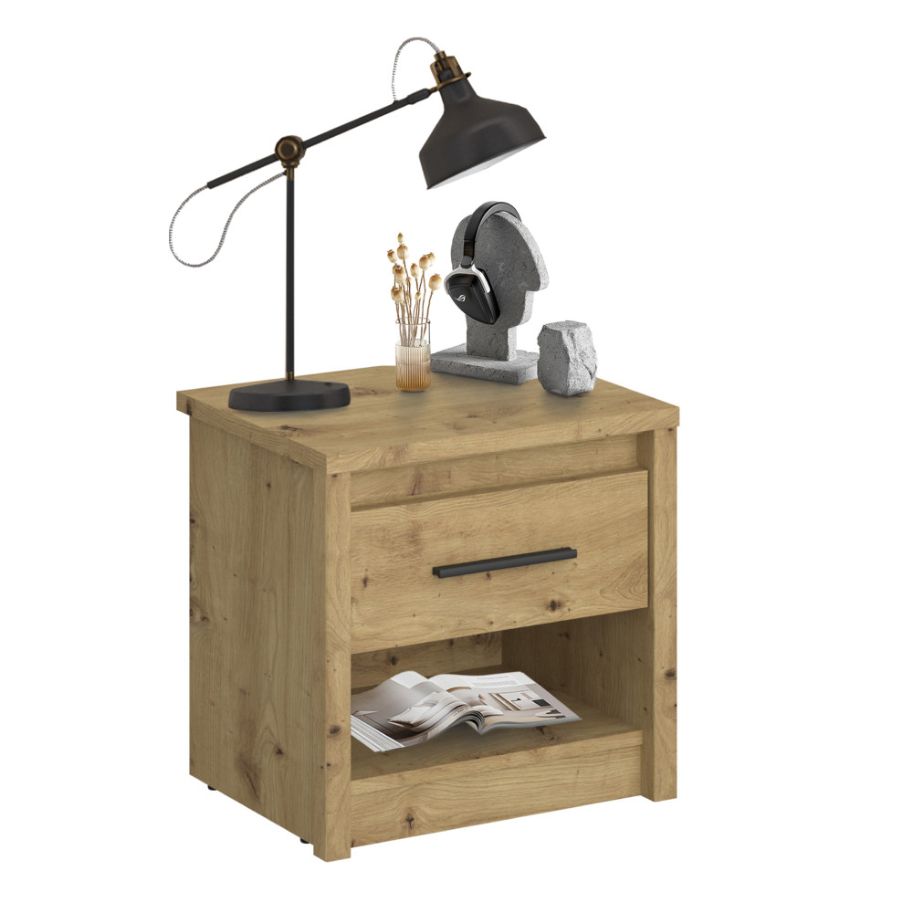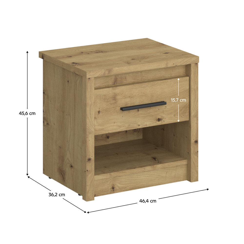 Egy jól megtervezett hálószoba nem csupán a pihenés helyszíne, hanem a személyes feltöltődés szentélye is. Ismerd meg az AIRON éjjeli asztalt, amely a népszerű artisan tölgy színvilágával és letisztult formájával hozzájárul a harmonikus környezet megteremtéséhez. Ez a kisasztal kiváló minőségű, laminált forgácslapból készült, strapabíró ABS élekkel, hogy hosszú távon is megbízható társad legyen.
