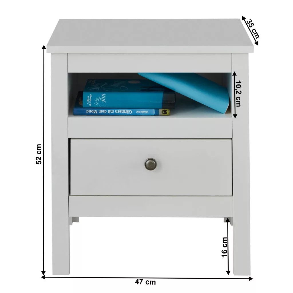 A praktikus kialakításnak köszönhetően minden kéznél lesz, amire szükséged lehet. A felső lap ideális egy lámpának és a kedvenc könyvednek, míg a fiók diszkrét tárolást biztosít a személyesebb tárgyaknak. Az alatta található nyitott polc pedig tökéletes helyet kínál magazinoknak vagy egyedi dekorációnak.