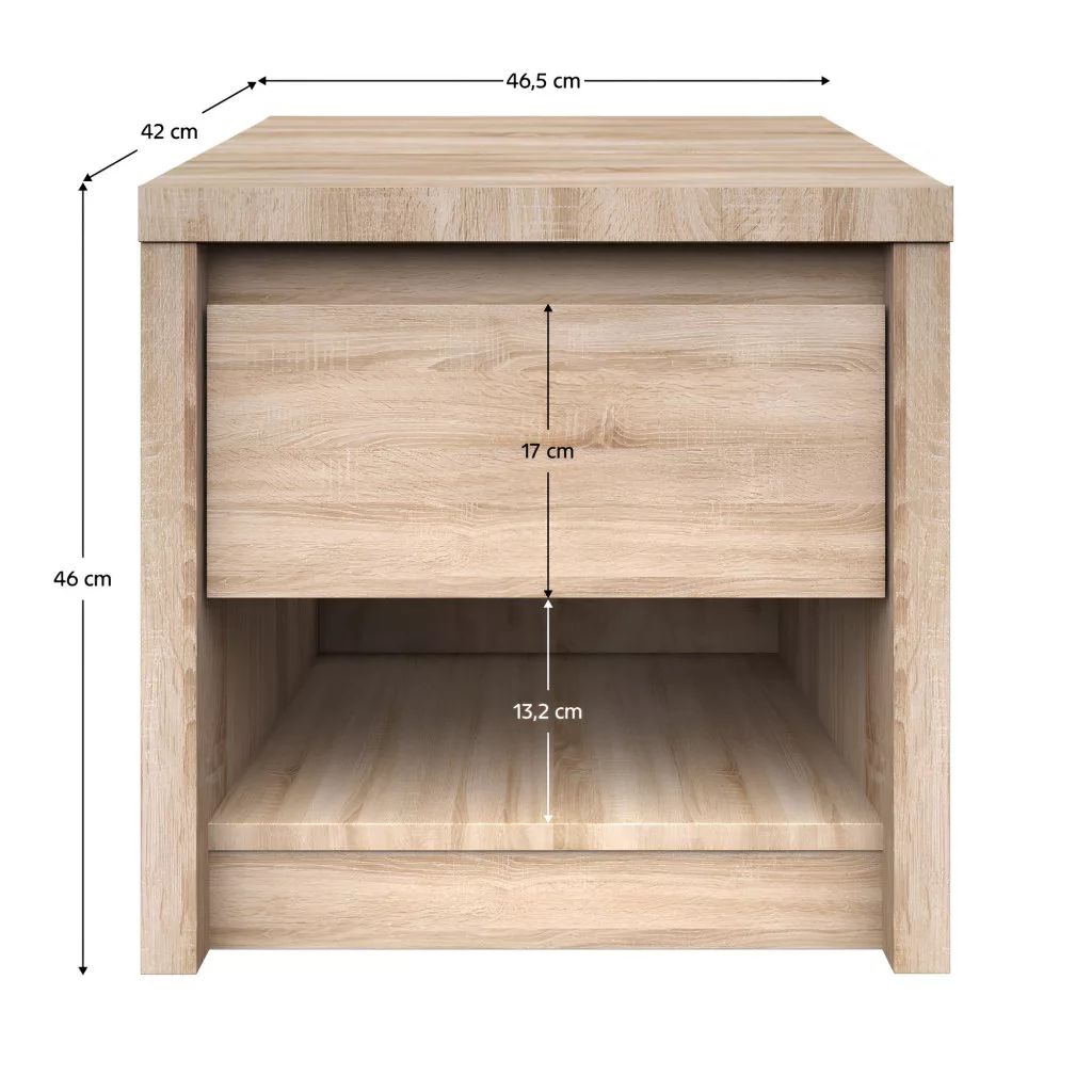 A bútor optimális méretekkel rendelkezik, így kényelmesen elfér a legtöbb ágy mellett. Pontos paraméterei a következők: