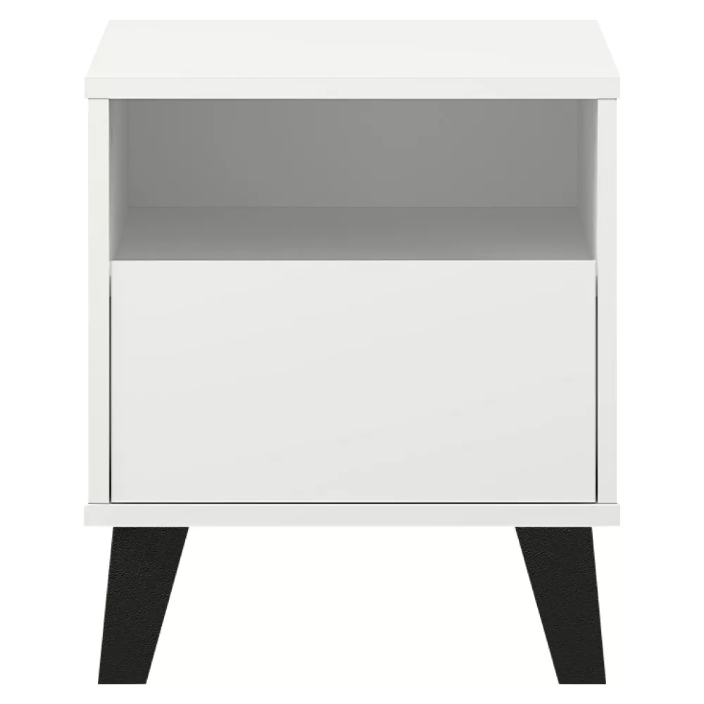 Egy jól megválasztott éjjeliszekrény nem csupán praktikus tárolóhely, hanem a hálószoba hangulatának meghatározó eleme is. A BOGAN NEW termékcsaládunk letisztult darabja pontosan ezt a kettős funkciót tölti be. Ez az időtlen dizájnnal rendelkező éjjeli asztal fehér színű, tartós laminált DTD lapból készült, egy praktikus fiókkal és egy nyitott tárolórésszel biztosít helyet a legfontosabb tárgyaidnak, miközben modern, fogantyú nélküli kialakítása eleganciát sugároz.