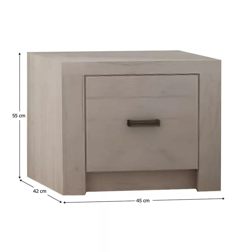A magas kihasználhatóság és a tartósság a tervezés alapkövei voltak. A kiváló minőségű, kedvelt laminált faforgácslap és a strapabíró ABS élek garantálják, hogy a bútor hosszú éveken át, a mindennapos használat során is megőrizze szépségét és stabilitását. Praktikus tárolóasztalként is funkcionál, köszönhetően a tágas fióknak, melyben diszkréten elhelyezheted személyes tárgyaidat, a könyvedet vagy a szemüvegedet.