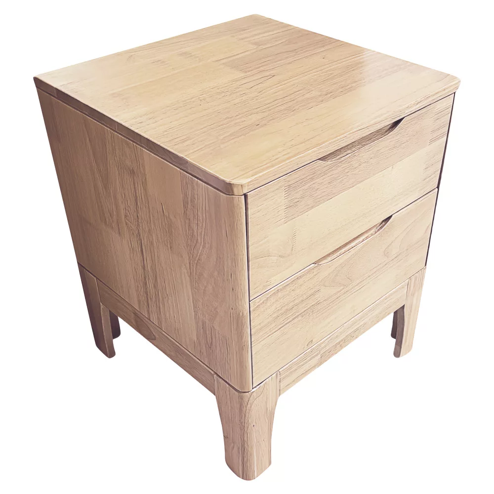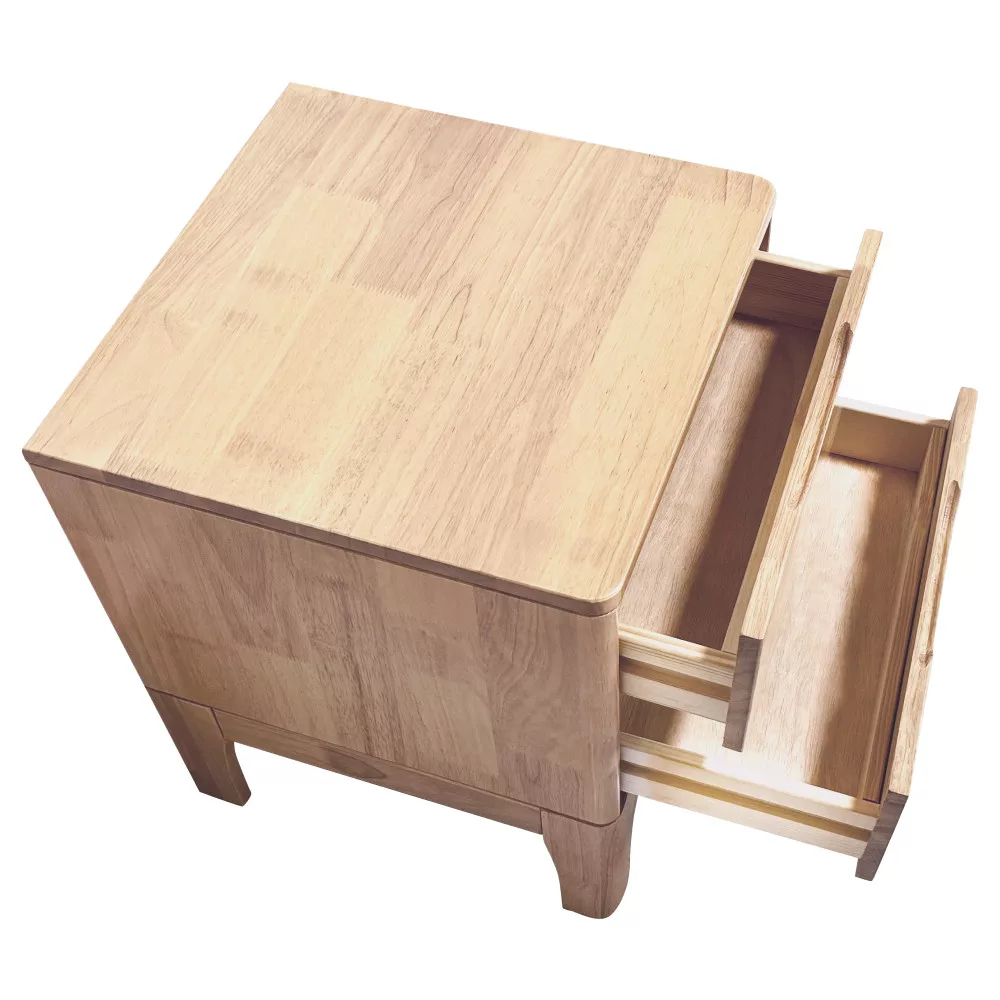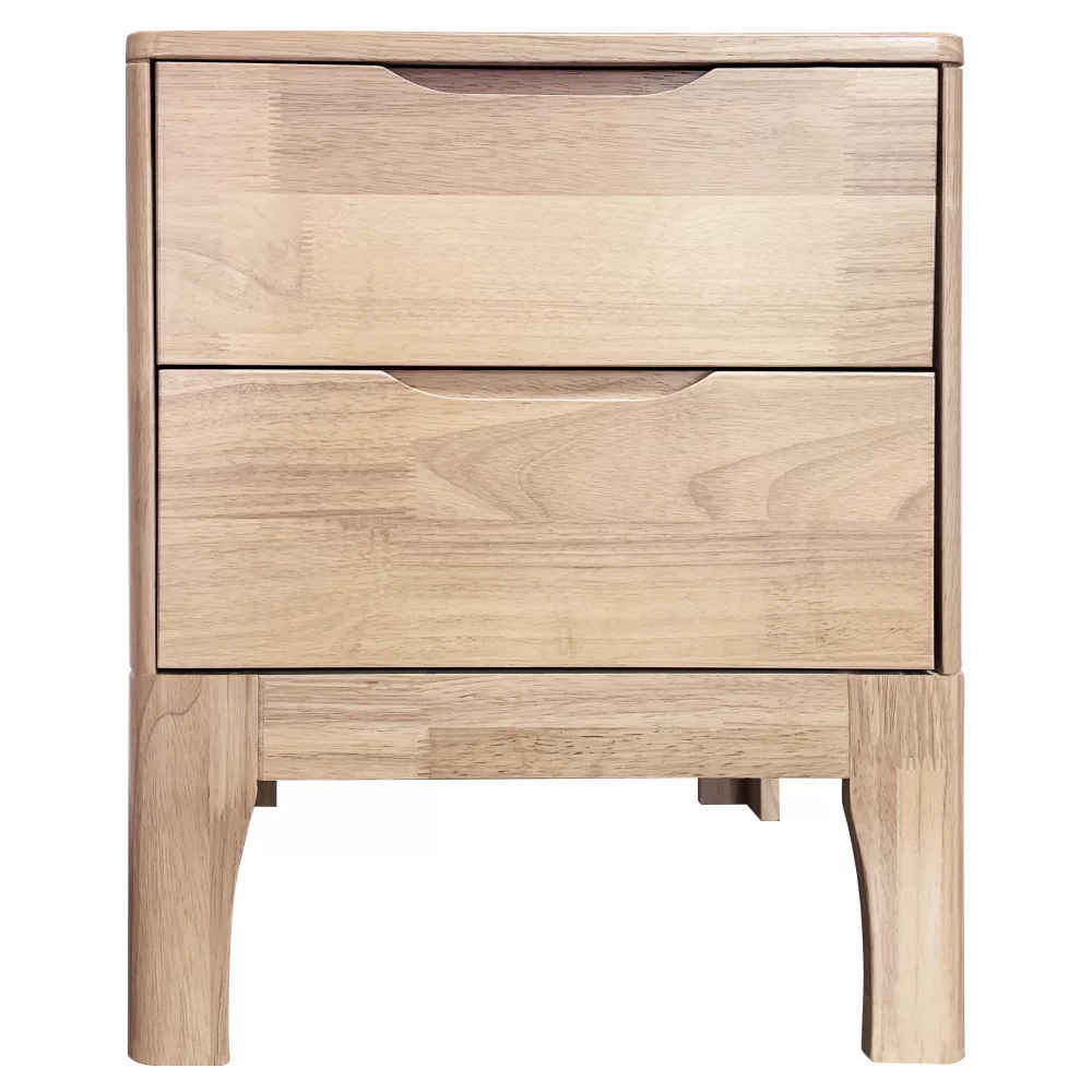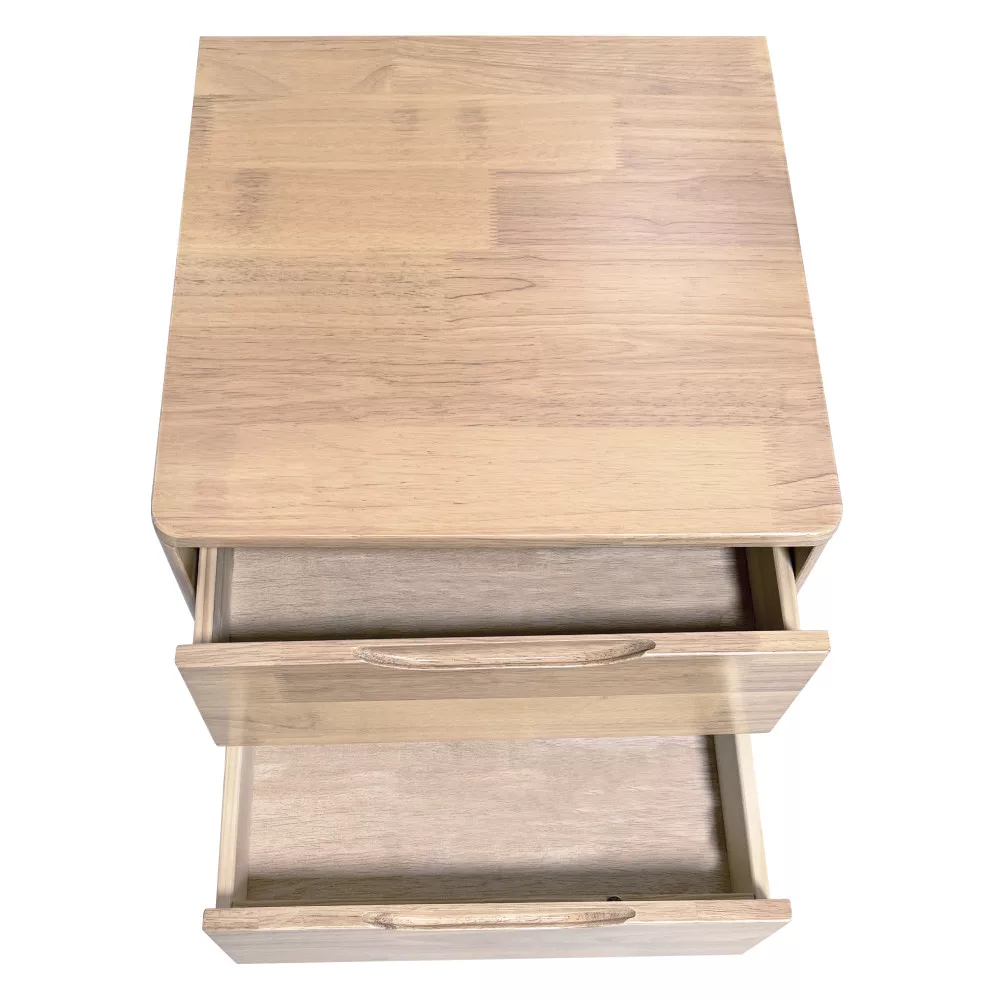 A FERB modell megalkotásánál a tartósság és az időtlen esztétika volt a fő szempont. A bútortest és a stabil lábak masszív kaucsukfából, míg a fiókok könnyed fenyőfából készültek. A természetes, lakkozott felület nemcsak védi a fát, de kiemeli annak egyedi erezetét, melegséget és otthonosságot csempészve a térbe. A klasszikus fogantyúk helyett alkalmazott süllyesztett bemélyedések modern, minimalista megjelenést kölcsönöznek, miközben a fiókok kezelése könnyű és kényelmes marad. Ez a letisztult formavilág teszi ideális választássá nemcsak hálószobába, hanem akár egy vendég- vagy gyerekszobába is, ahol a rend és az esztétikum egyaránt fontos.
