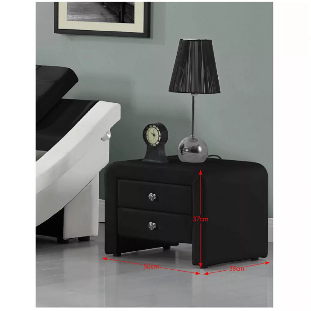 A WILSON modell egyedi karakterét a teljes felületet borító fekete textilbőr kárpitozás adja, amely különleges tapintást és exkluzív megjelenést kölcsönöz a bútornak. A két fiók bőséges helyet kínál mindennek, amit az ágy mellett szeretnél kéznél tartani – legyen szó egy jó könyvről, a szemüvegedről vagy a személyes apróságaidról. Ez a praktikus tárolóasztal segít fenntartani a rendet, miközben a fiókokat díszítő szép fém fogantyúk diszkrét eleganciát sugároznak. A lábakon álló kialakítás nemcsak divatos, de a könnyedség érzetét is kelti, így a kisasztal a kisebb terekben sem hat nyomasztóan.