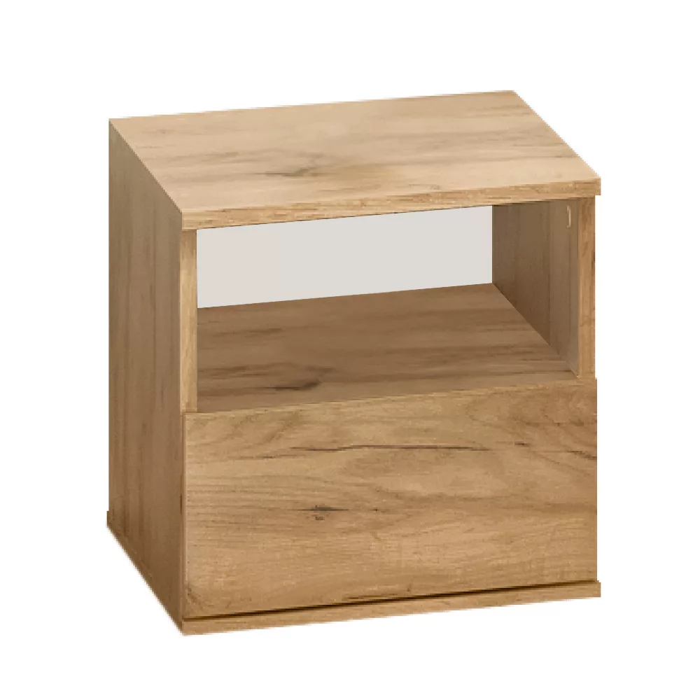 A nyugodt pihenéshez elengedhetetlen a rendezett környezet. Az DOLI éjjeli asztal pótolhatatlan társad lesz ebben, hiszen funkcionális helyet biztosít az ágy mellett, miközben letisztult, minimalista dizájnjával emeli a szoba hangulatát. Ez az elegáns hálószobai kisasztal laminált DTD-ből készült, a meleg és természetes hatású tölgy craft arany színben, amely harmonikusan illeszkedik a legtöbb enteriőrbe.