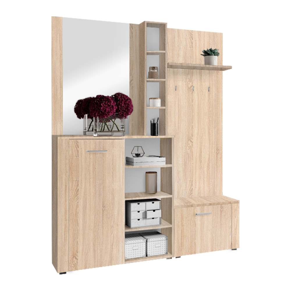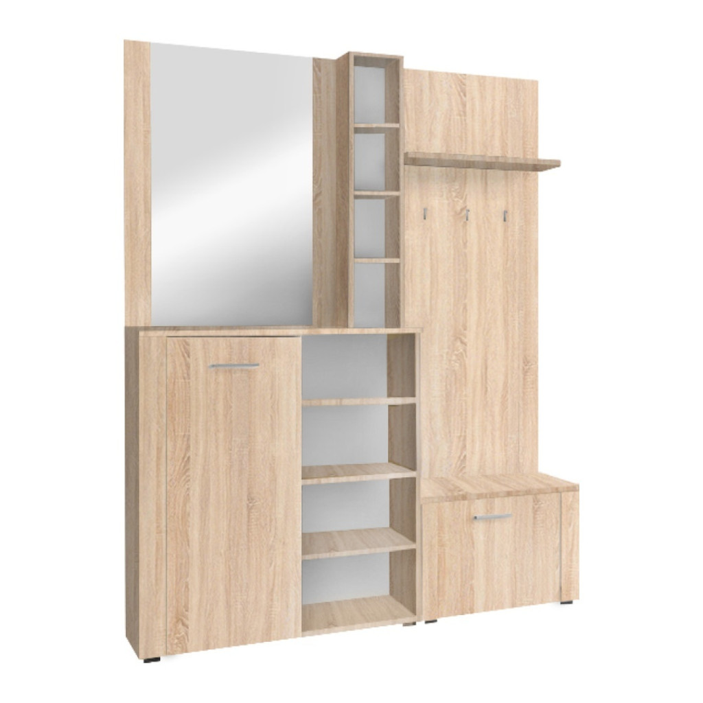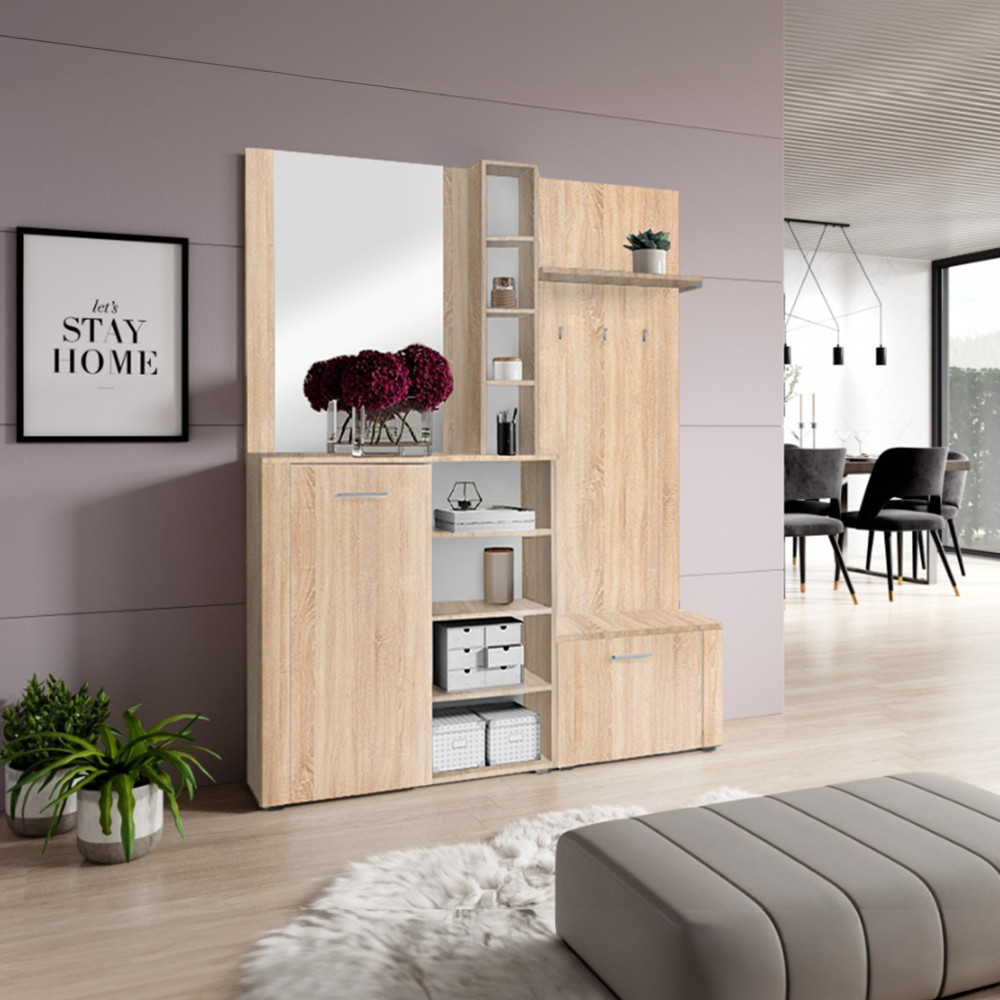 Az előszoba az otthonod névjegye; az első benyomás, amely Téged és a vendégeidet fogadja. Egy átgondoltan berendezett tér nemcsak a rendezettség érzetét kelti, hanem a mindennapokat is megkönnyíti. Ez a sonoma tölgy színű, laminált DTD-ből készült előszoba szett nem csupán egy bútordarab, hanem egy átgondolt rendszer, amely bőséges tárhelyet és egy nagyméretű tükröt kínál, hozzájárulva a harmonikus és funkcionális környezet megteremtéséhez.