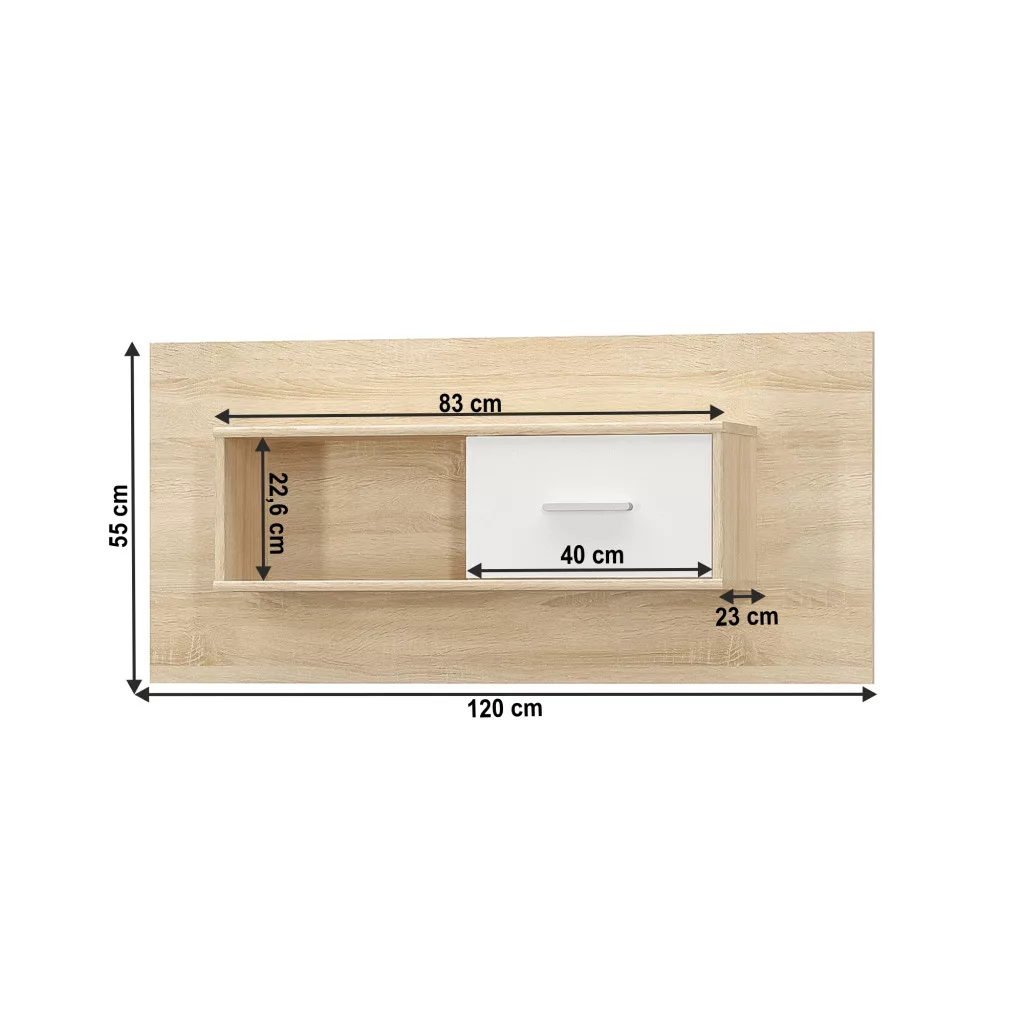 - Méretek (Szélesség x Mélység x Magasság): 120x23x55 cm