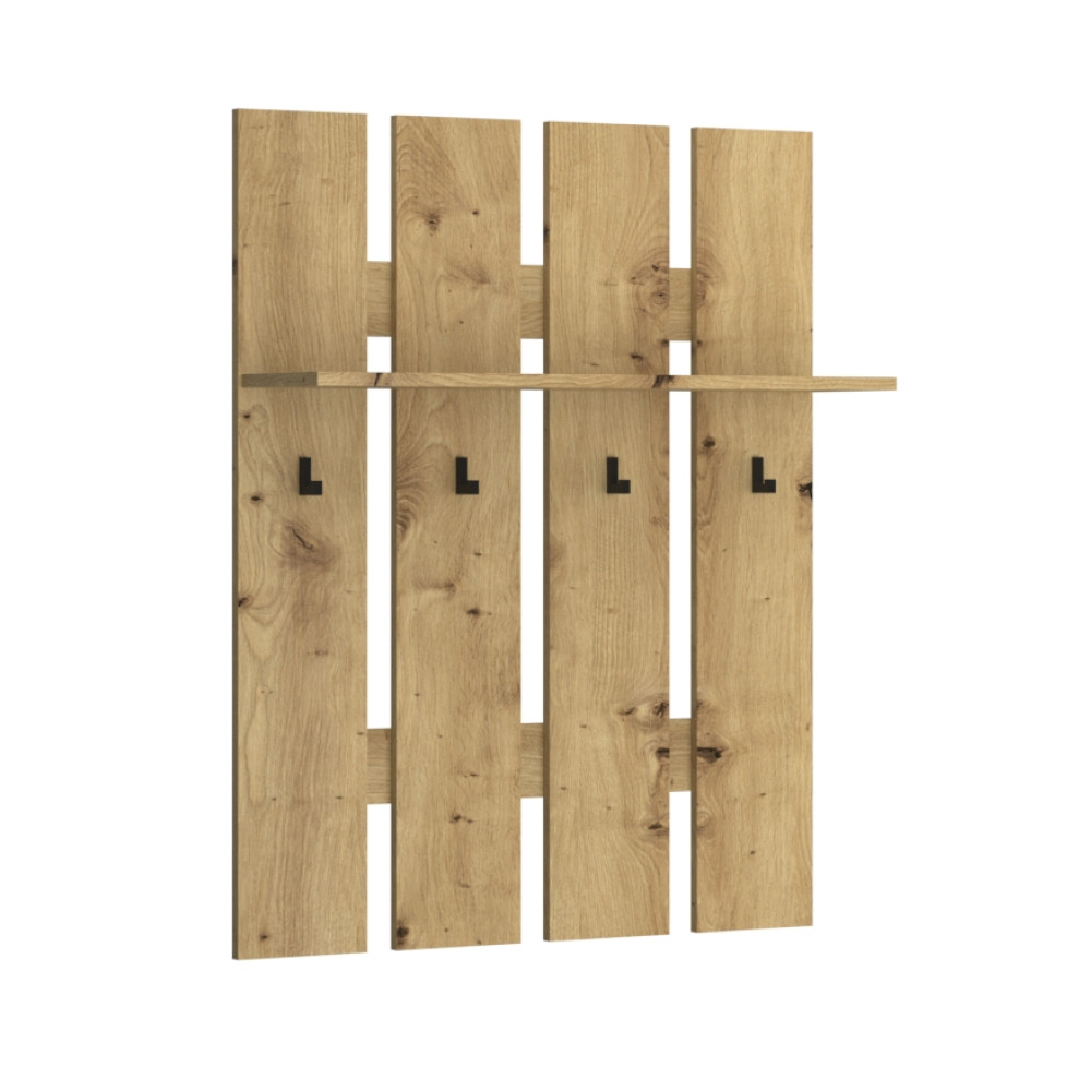Az AIRON bútorkollekció a minimalista stílust képviseli, amely letisztultságával és időtállóságával garantáltan nagyszerű választásnak bizonyul. A darabok értékét nem csupán a stílusos dizájn, hanem a kiváló minőségű és funkcionális kialakítás adja. A kollekció minden eleme, így ez a praktikus kabáttartó is, minőségi laminált forgácslapból készült, melynek tartósságát a gondosan kidolgozott ABS élek biztosítják. A fekete színű, modern műanyag kampók tökéletesen kiegészítik az artisan tölgy meleg árnyalatát, finom kontrasztot alkotva.