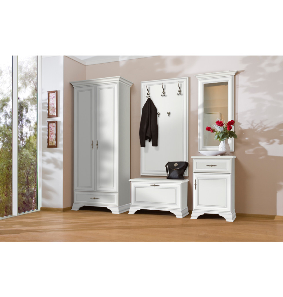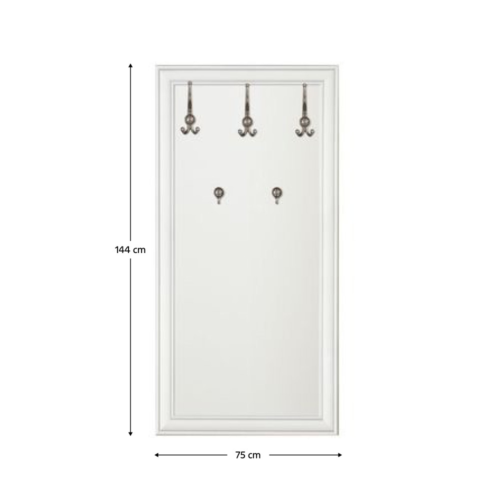 Ismerd meg az KENTAK Kelemes bútorrendszert, amely a praktikum és a stílus tökéletes egyensúlyát kínálja. Ez a sokoldalú fali akasztó laminált DTD-ből készült, időtálló alpesi fehér színben, így bármilyen enteriőrbe könnyedén beilleszthető. A letisztult megjelenést a fémből készült, antik ezüst kivitelű, stílusos kampók teszik teljessé, melyek eleganciát csempésznek a térbe.