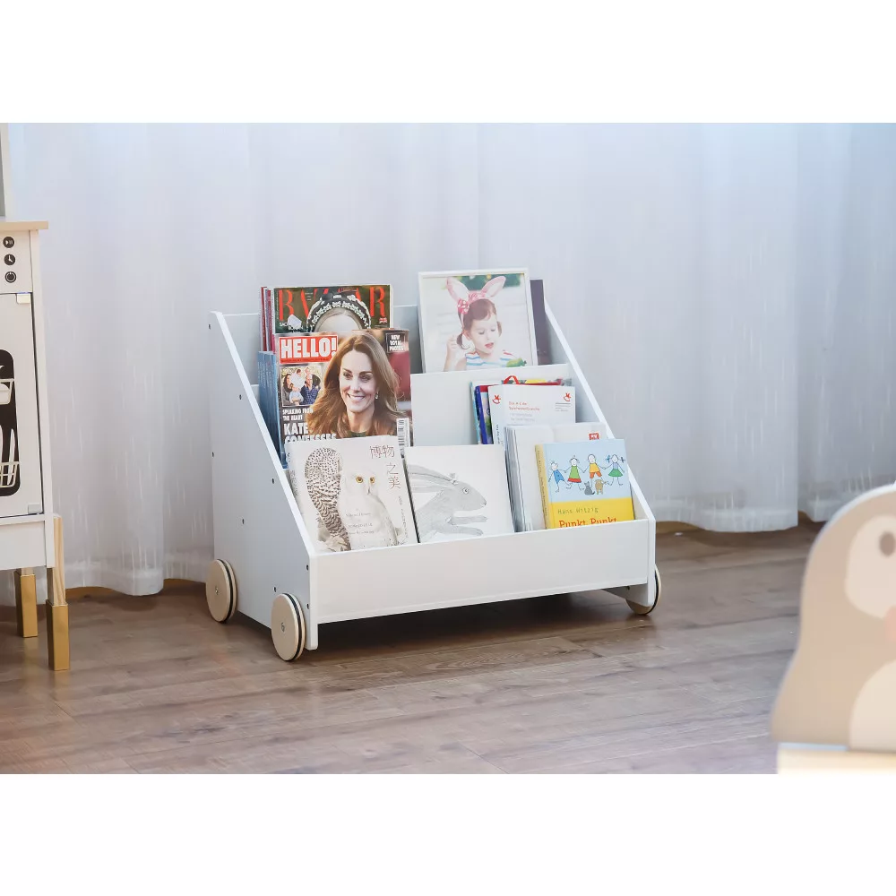 A gyermekkor egyik legszebb ajándéka az olvasás szeretete. Egy hívogató, saját kis olvasósarok kialakítása kulcsfontosságú lehet abban, hogy a könyvek világa varázslatos kalanddá váljon számára. A BERUS gurulós gyerekkönyvespolcunkat éppen erre a célra terveztük. Ez a többfunkciós, elegáns fehér gyerekszoba bútor MDF-ből és tömör fenyőfából készült, és három praktikus polcával tökéletes helyet biztosít a legkedvesebb mesekönyveknek. A lekerekített éleknek és a négy csendes, gumiborítású keréknek köszönhetően a használata biztonságos és rendkívül kényelmes.