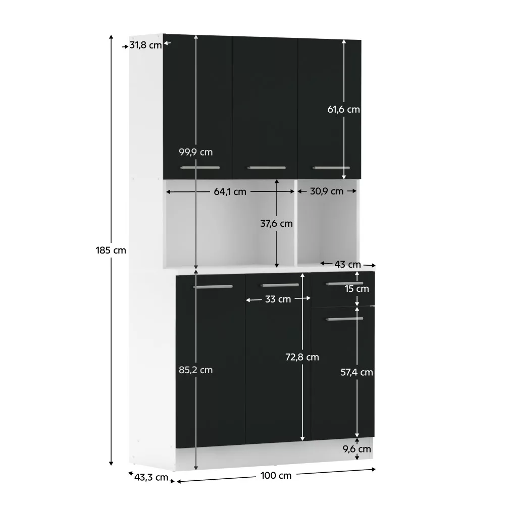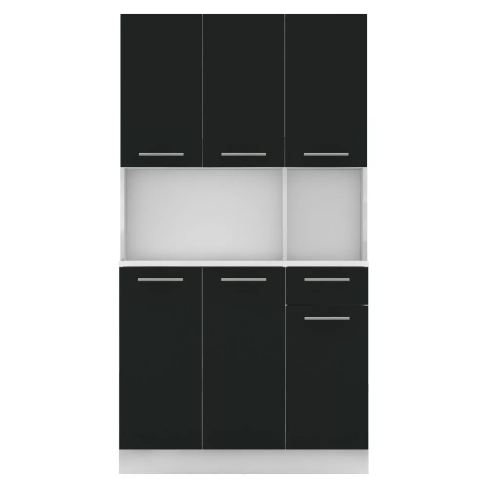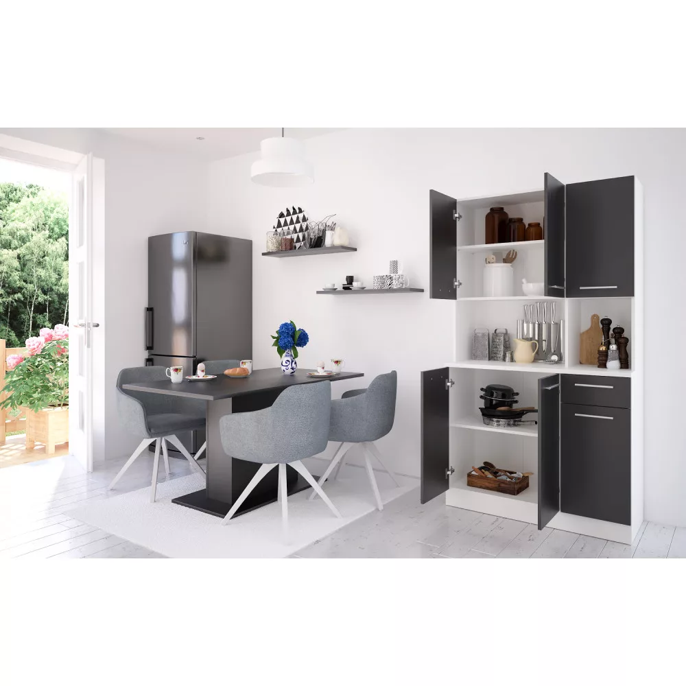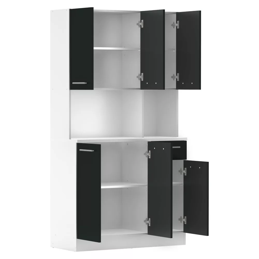 Egy jól szervezett konyha nem csupán esztétikai kérdés, hanem a mindennapi nyugalom és hatékonyság záloga is. A PELION NEW hatajtós kredencet pontosan erre a célra terveztük: hogy segítsen Neked egy rendezett és inspiráló környezetet teremteni. Ez a bútordarab a tartós, laminált DTD alapanyagnak, valamint a letisztult fehér és fekete színkombinációnak köszönhetően frissességet és modern eleganciát visz otthonodba. A hat tágas ajtó és a praktikus fiók bőséges tárolóhelyet kínál, így minden konyhai eszközödnek, étkészletednek és dekorációdnak megtalálhatod a tökéletes helyét.