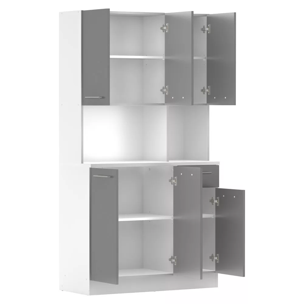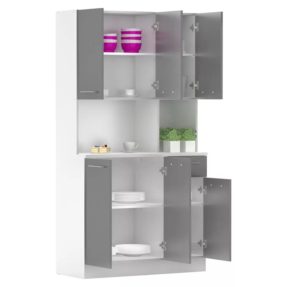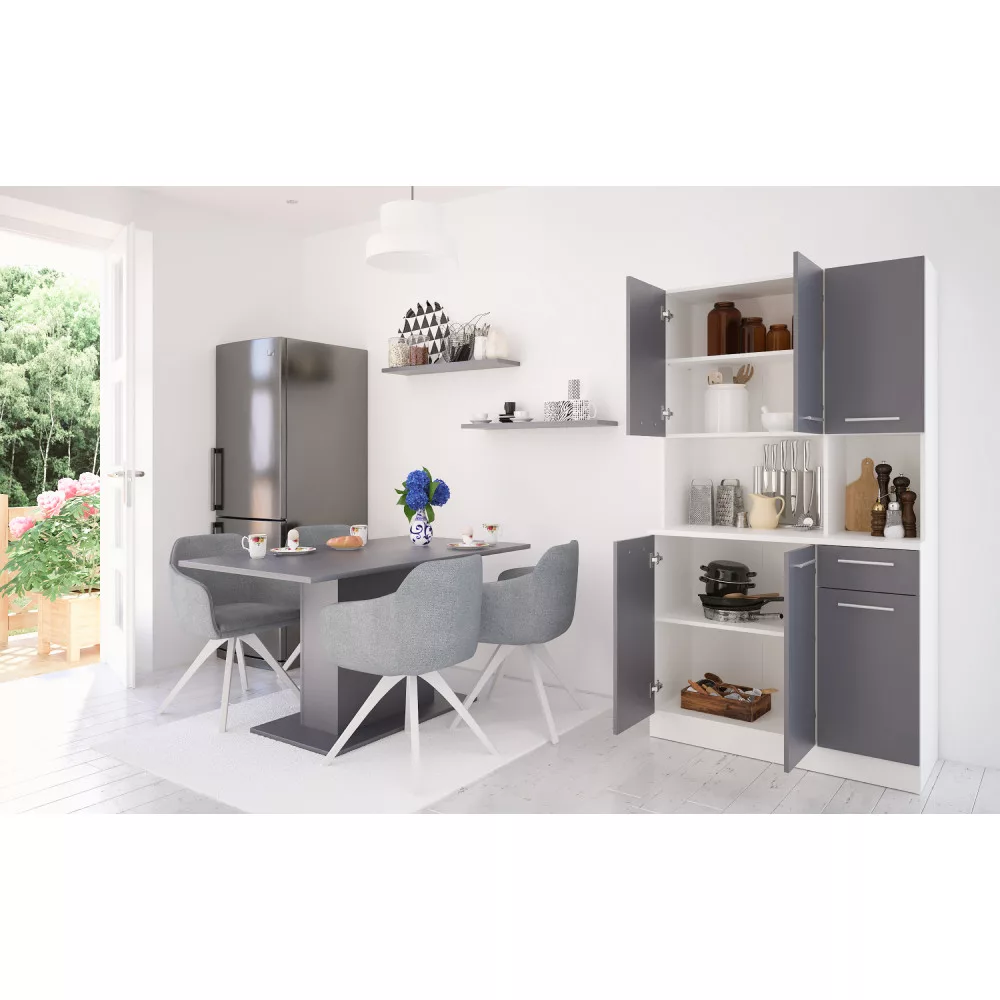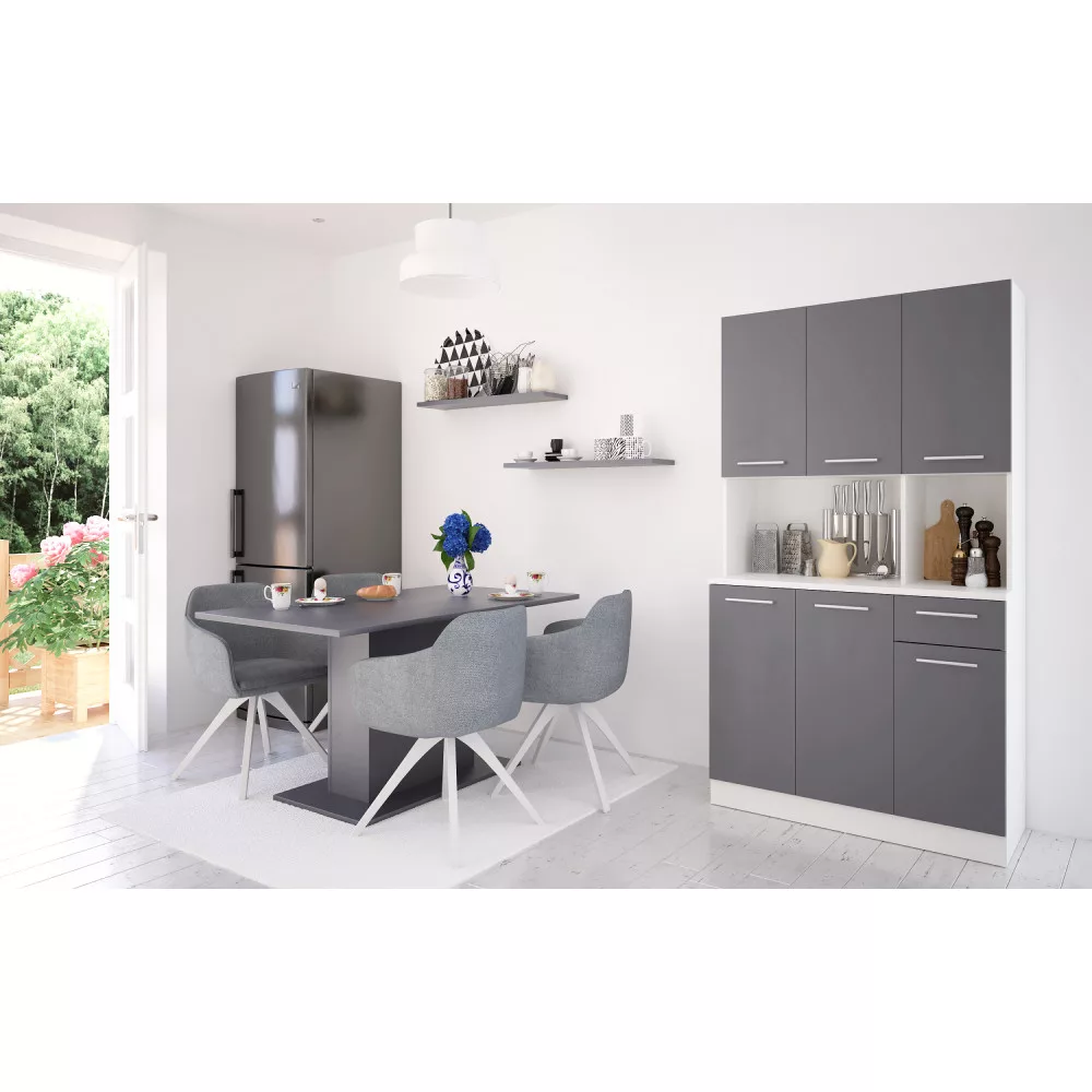 A PELION NEW hatajtós kredenc pontosan ezt a célt szolgálja, egy olyan nélkülözhetetlen segítőtárs, amely a funkcionalitást és a modern stílust ötvözi. Tartós, laminált DTD faforgácslapból készült, elegáns fehér és grafit színkombinációban, amely frissességet és letisztultságot sugároz. A hat tágas ajtó és egy praktikus fiók bőséges tárolóhelyet kínál konyhai eszközeidnek, étkészleteidnek vagy akár a ritkábban használt dekorációknak is. A modern, ezüst színű PVC fogantyúk nemcsak esztétikusak, de kényelmes használatot is biztosítanak, míg a műanyag csúszótalpak megvédik a padlóburkolatot az esetleges sérülésektől és stabilitást nyújtanak egyenetlen felületeken is. Ez a multifunkcionális darab nem csupán a konyhában, hanem az étkezőben vagy akár egy kerti pavilonban is megállja a helyét, bizonyítva sokoldalúságát.