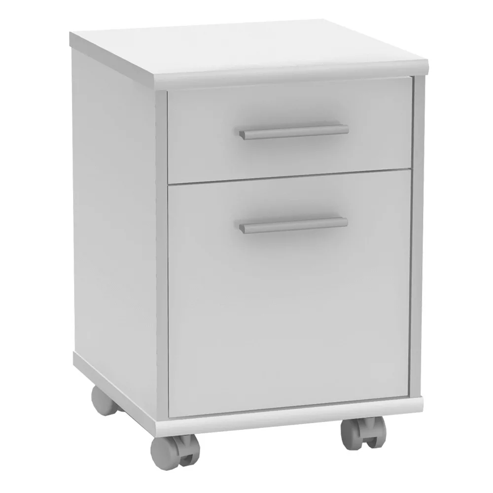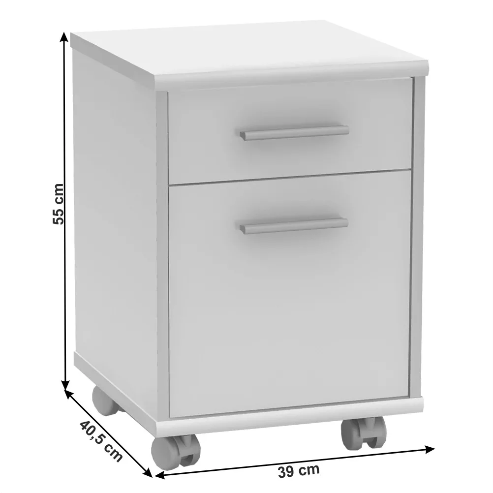 A konténer strapabíró, laminált DTD anyagból készült, időtálló fehér színben, a tartósságot pedig a minőségi ABS élek garantálják. A mobilitásról négy kerék gondoskodik, így könnyedén a megfelelő helyre mozgathatod az íróasztal mellett. A tárolási lehetőségeket egy praktikus fiók és egy polccal ellátott szekrény biztosítja, melyek méretei ideálisak a dokumentumok és irodaszerek rendezett elhelyezésére. A könnyű kezelhetőséget egy diszkrét fogantyú segíti.