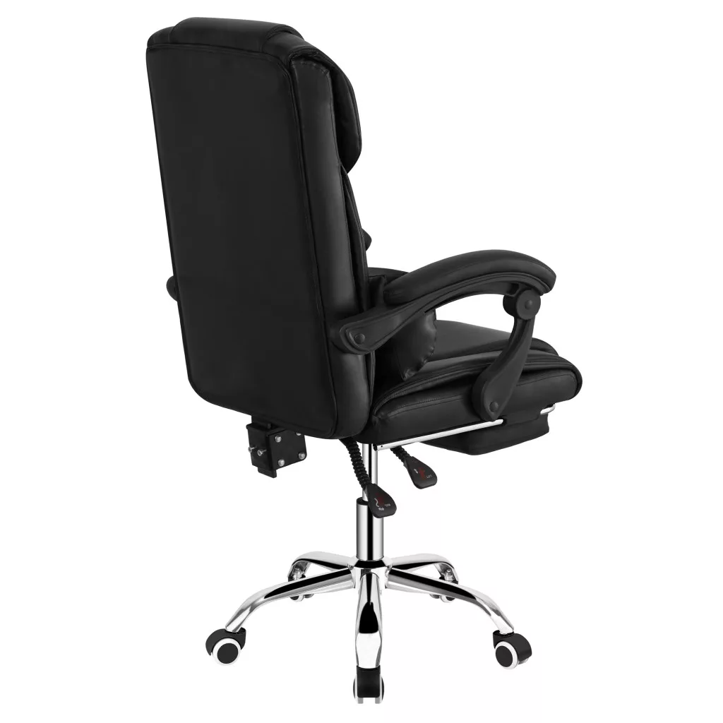 A fotel eleganciáját a fekete ökobőr és a krómozott fém váz harmonikus egysége adja. A kárpit rendkívül strapabíró, kopásállósága a Martindale-teszt szerint is kiemelkedő, 100 000 ciklus, ami hosszú távú, megbízható használatot garantál. A stabil, fémből készült váz univerzális kerekekben végződik, így ez a görgős szék biztonsággal használható mind kemény padlón – például parkettán –, mind puha szőnyegen anélkül, hogy kárt tenne a felületben.