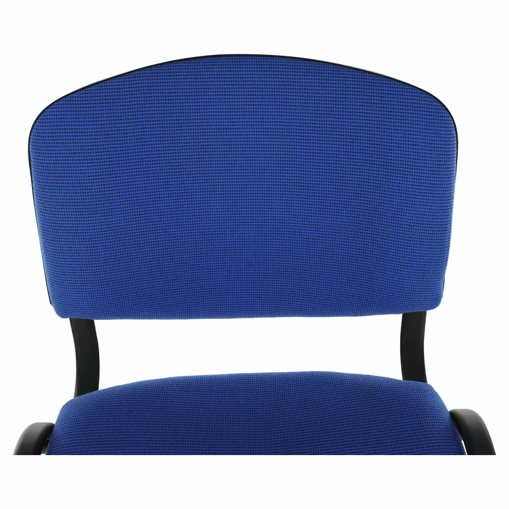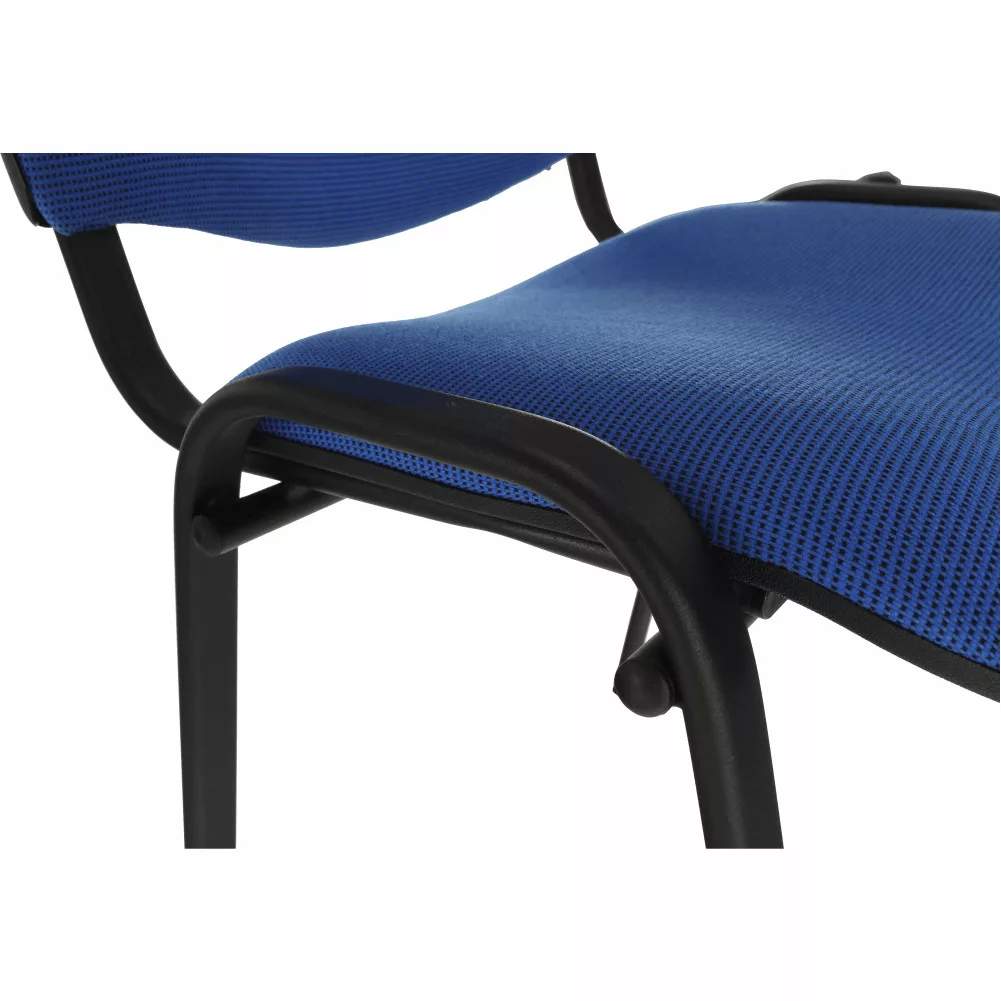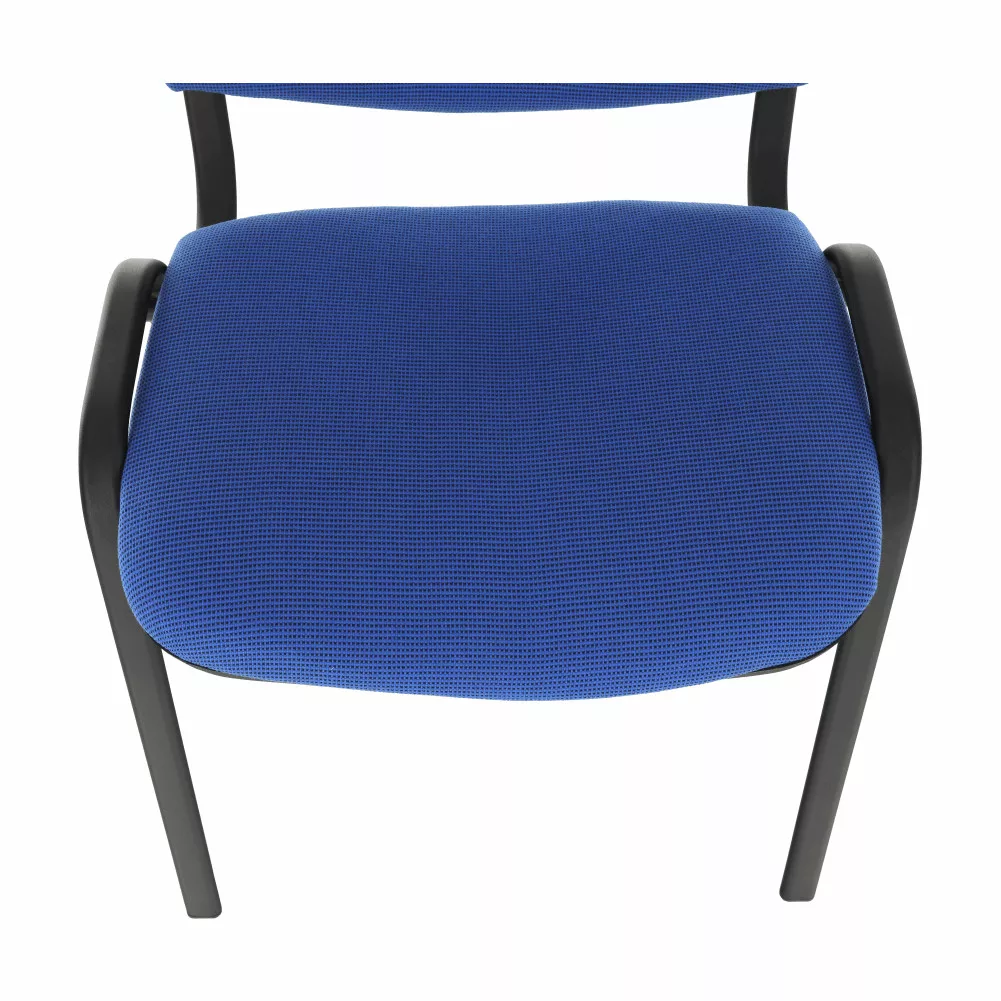 A szék tartósságát a masszív, fekete fém váz és a kiváló minőségű kék szövetkárpit biztosítja. A szövet kopásállósága rendkívül magas, 80 000 Martindale értékű, ami garantálja, hogy a szék hosszú távon is megőrzi esztétikus megjelenését, még intenzív használat mellett is. Az ülés és a háttámla kellemes tapintású és kényelmes tartást ad, így ideális választás irodákba, társalgókba, szállodai előcsarnokokba vagy konferenciatermekbe.