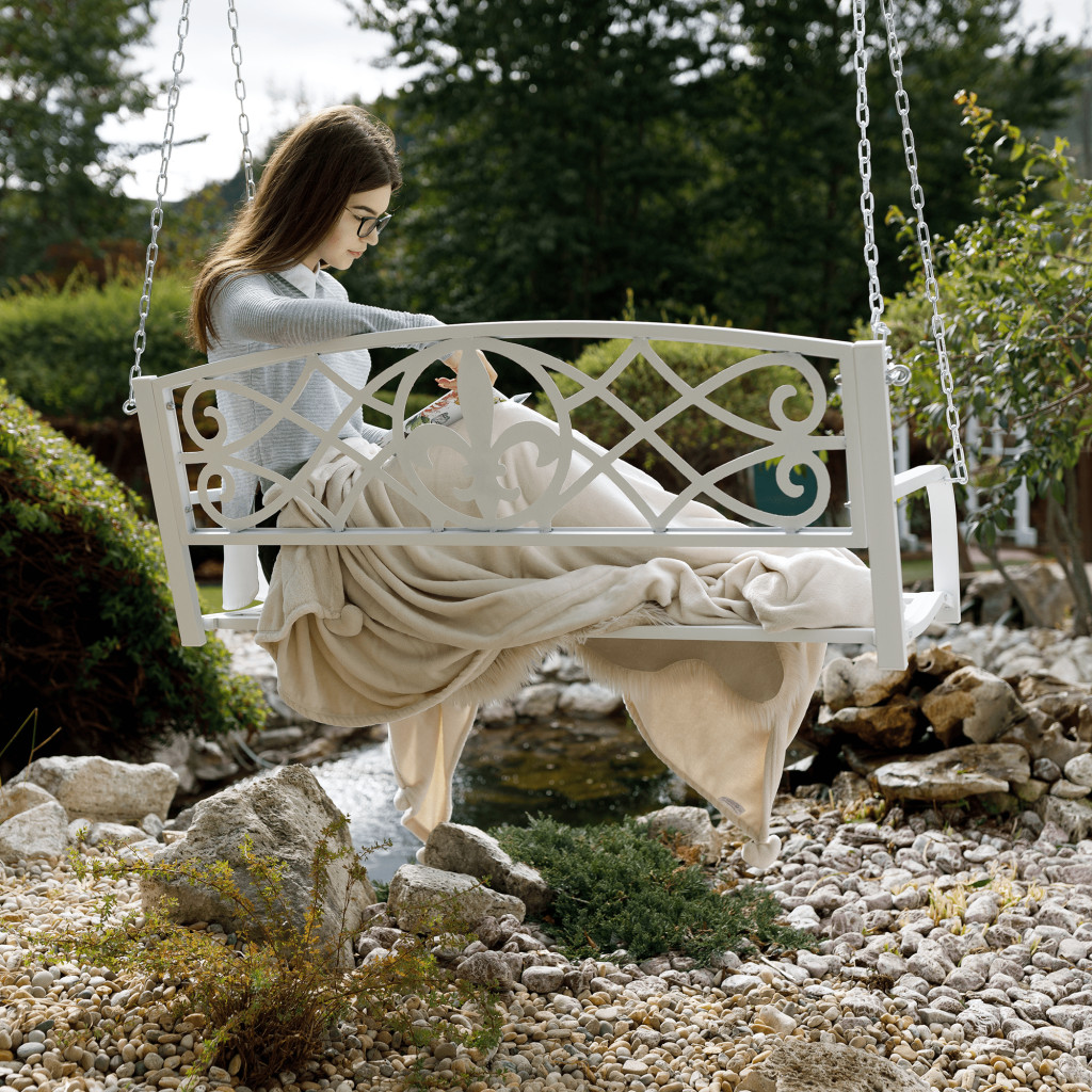 Sokan vágyunk egy saját, meghitt menedékre a rohanó hétköznapok után, egy helyre, ahol egy pillanatra megállhatunk feltöltődni. Az ABEA függő hinta pontosan ezt a nyugalmat hozza el otthonodba. Ez a fehér acélból készült, romantikus díszítéssel ellátott hinta ideális megoldás, ha egy gyönyörű, de kisebb teraszon vagy erkélyen szeretnéd megteremteni a pihenés szigetét. Könnyedén rögzítheted a mennyezethez vagy egy gerendához, így helyet takaríthatsz meg anélkül, hogy lemondanál a ringatózás élményéről.