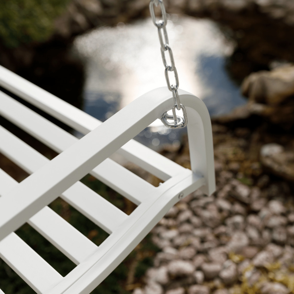Míg egy klasszikus fa kerti pad a természetességet, egy praktikus tárolós pad pedig a funkcionalitást képviseli, az ABEA hinta egyedülálló, lebegő élményt kínál. Strapabíró, porszórt acél szerkezete a masszív parki padok időtállóságát idézi, légies, finom vonalvezetése mégis modern eleganciát sugároz. Tökéletes választás lehet, ha egy hagyományos kültéri pad helyett valami különlegesebbre vágysz. A fehér szín letisztultságot visz bármilyen környezetbe, a háttámla finom, organikus mintázata pedig egy csipetnyi romantikát csempész a térbe. A karbantartása rendkívül egyszerű, így több időd marad a pihenésre.