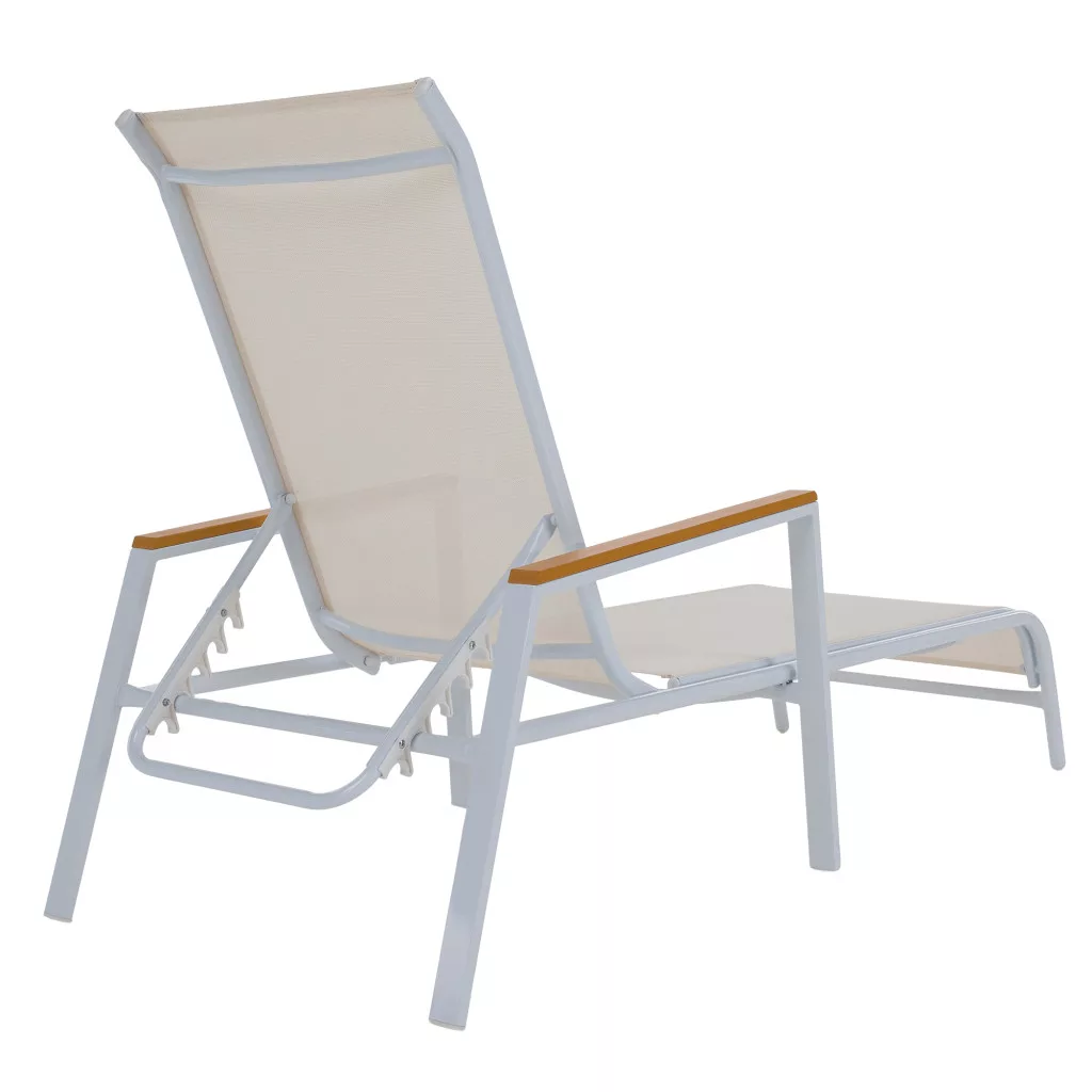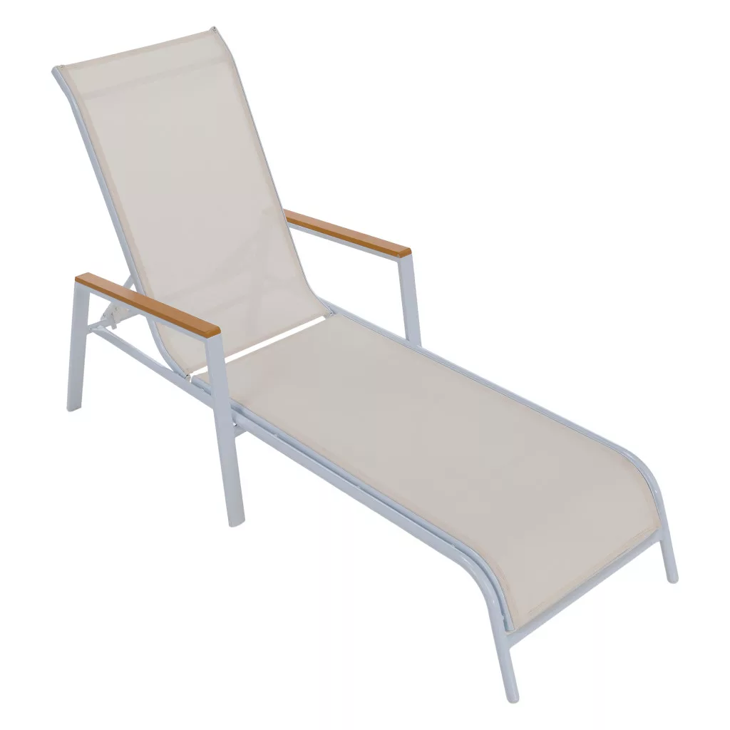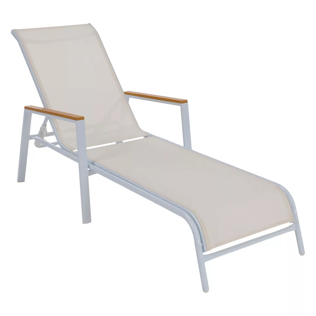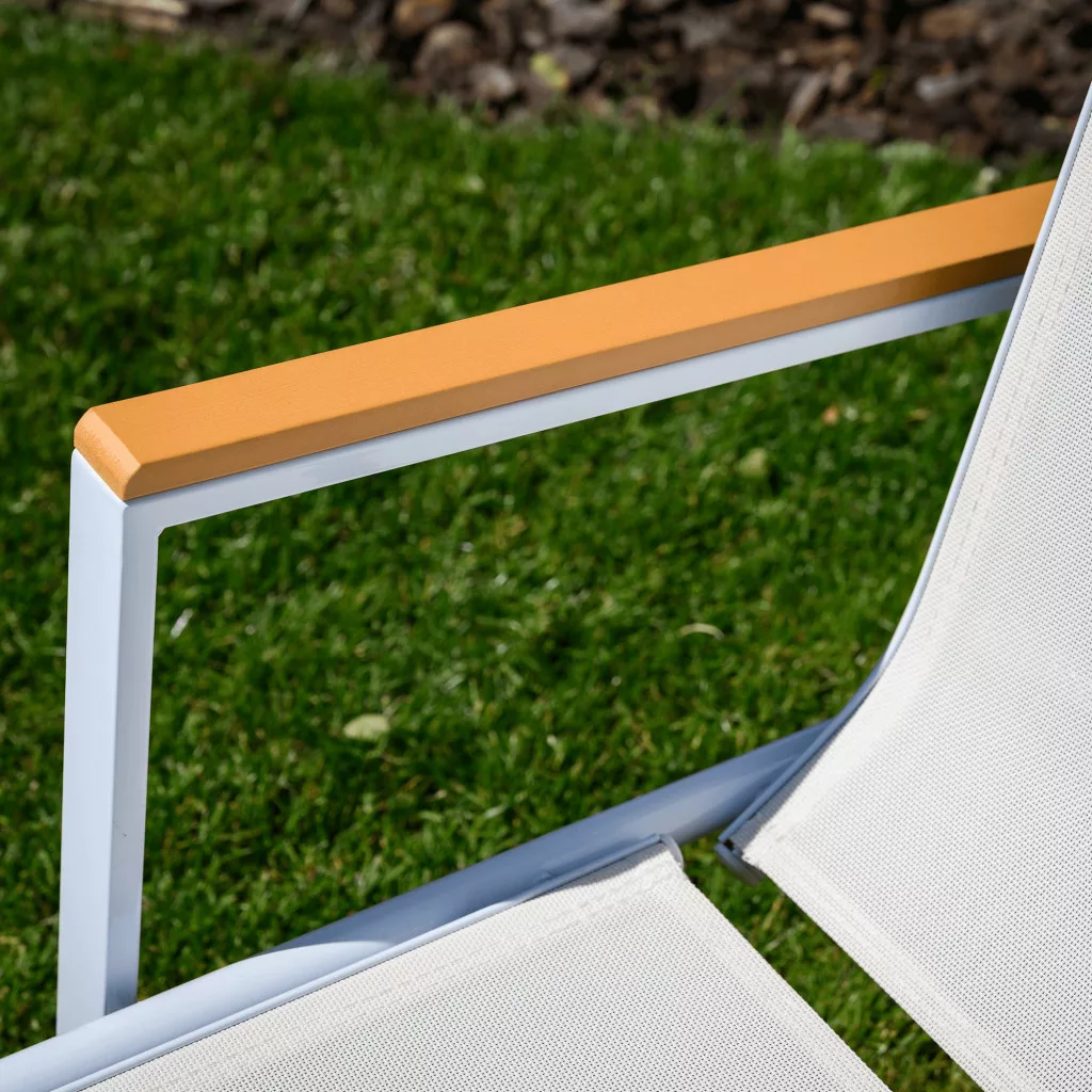 Ismerd meg a BONTO kerti nyugágyat, amely a modern dizájnt a páratlan kényelemmel ötvözi a tökéletes relaxáció érdekében. A letisztult, fehér színű, légáteresztő műszövetből készült fekvőfelület ideális a meleg nyári estékhez. Ez a praktikus hálós nyugágy 5 pozícióban állítható háttámlával rendelkezik, így mindig megtalálhatod a legkényelmesebb testhelyzetet, legyen szó napozásról vagy olvasásról. A stabilitásról egy masszív, fehér acélváz gondoskodik, a karfák pedig a természetességet idéző, tölgy megjelenésű polywood anyagból készültek. Mivel a nyugágy rakásolható, tárolása rendkívül helytakarékos.