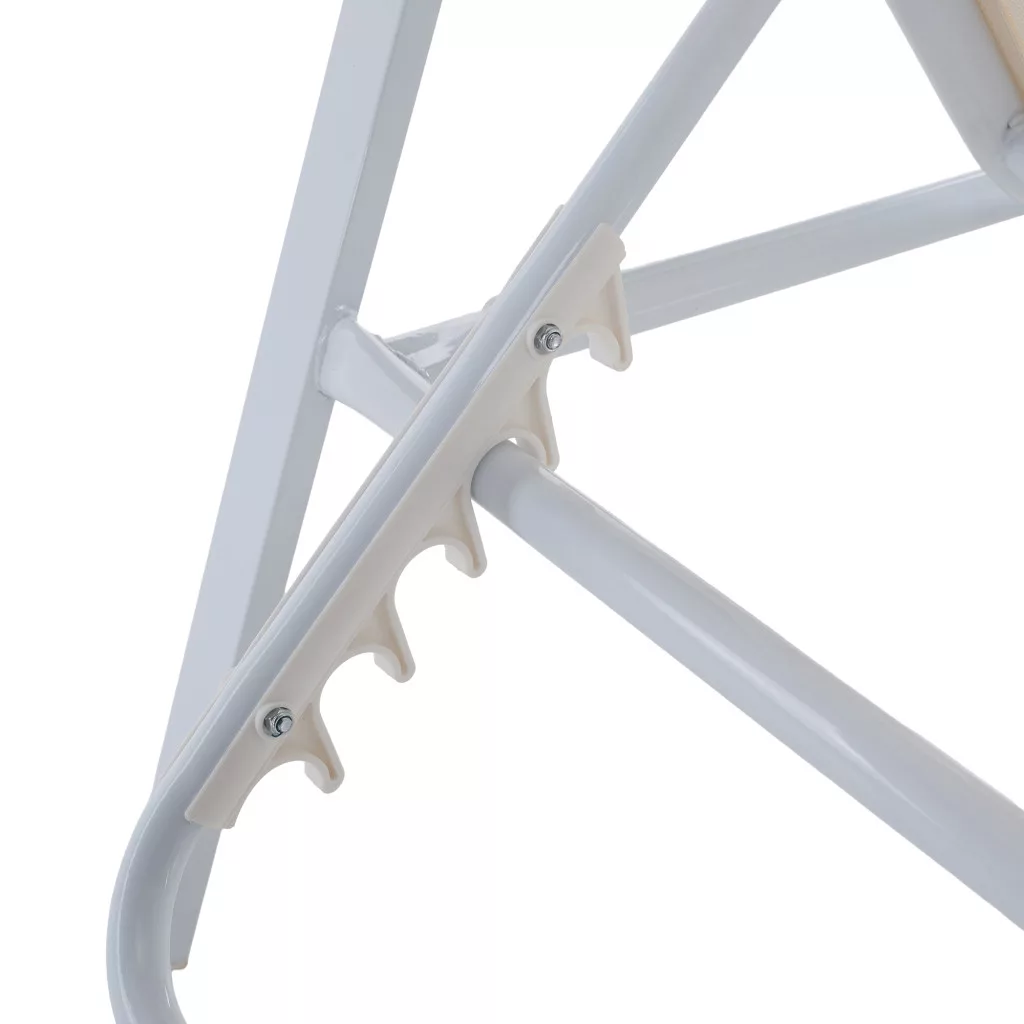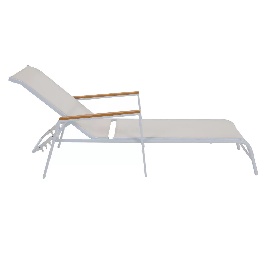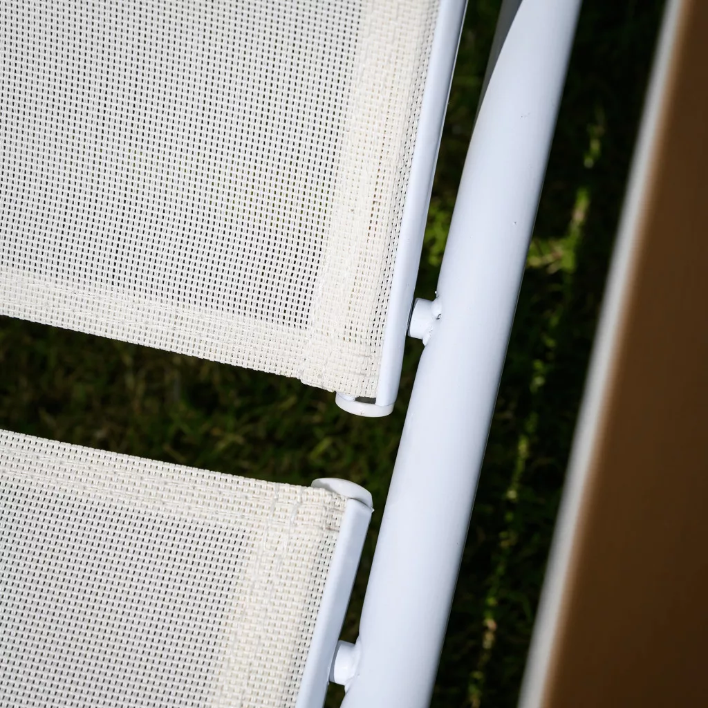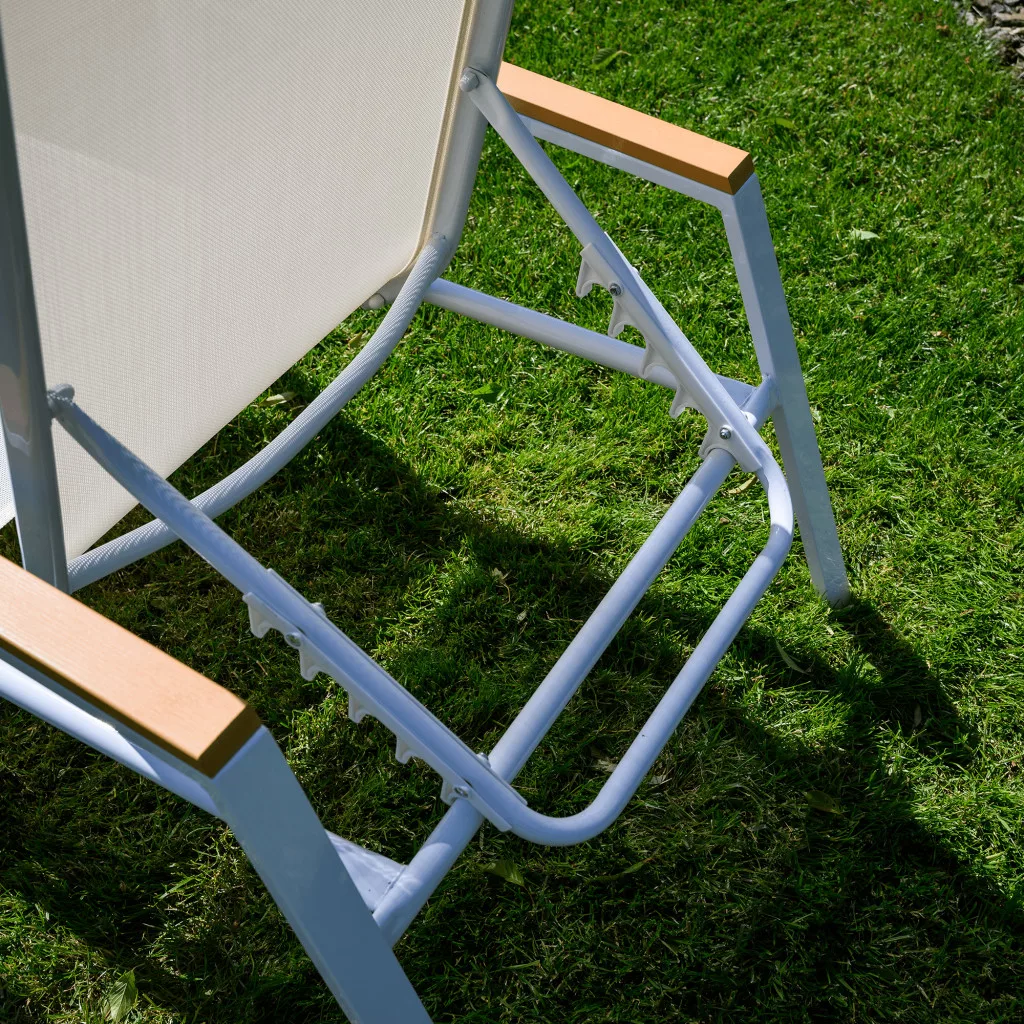 Ismerd meg a BONTO kerti nyugágyat, amely a modern dizájnt a páratlan kényelemmel ötvözi a tökéletes relaxáció érdekében. A letisztult, fehér színű, légáteresztő műszövetből készült fekvőfelület ideális a meleg nyári estékhez. Ez a praktikus hálós nyugágy 5 pozícióban állítható háttámlával rendelkezik, így mindig megtalálhatod a legkényelmesebb testhelyzetet, legyen szó napozásról vagy olvasásról. A stabilitásról egy masszív, fehér acélváz gondoskodik, a karfák pedig a természetességet idéző, tölgy megjelenésű polywood anyagból készültek. Mivel a nyugágy rakásolható, tárolása rendkívül helytakarékos.