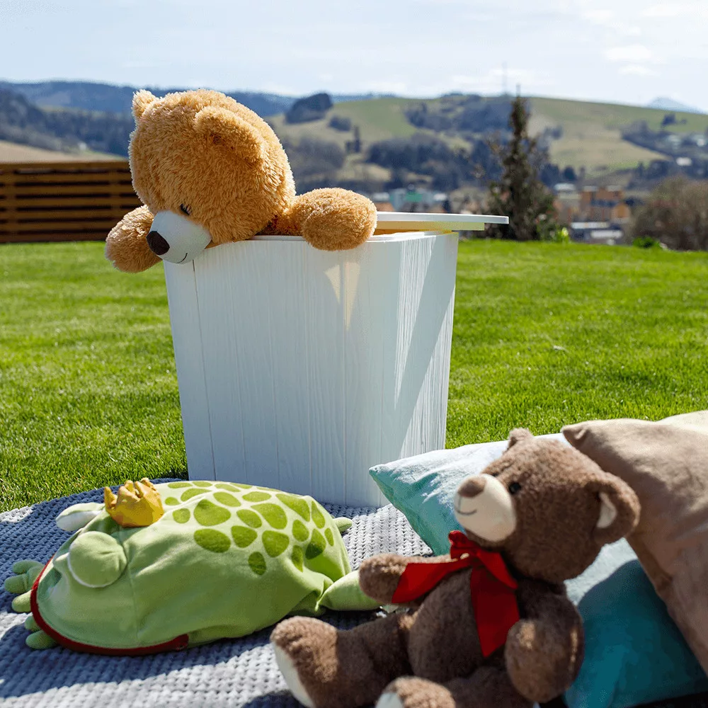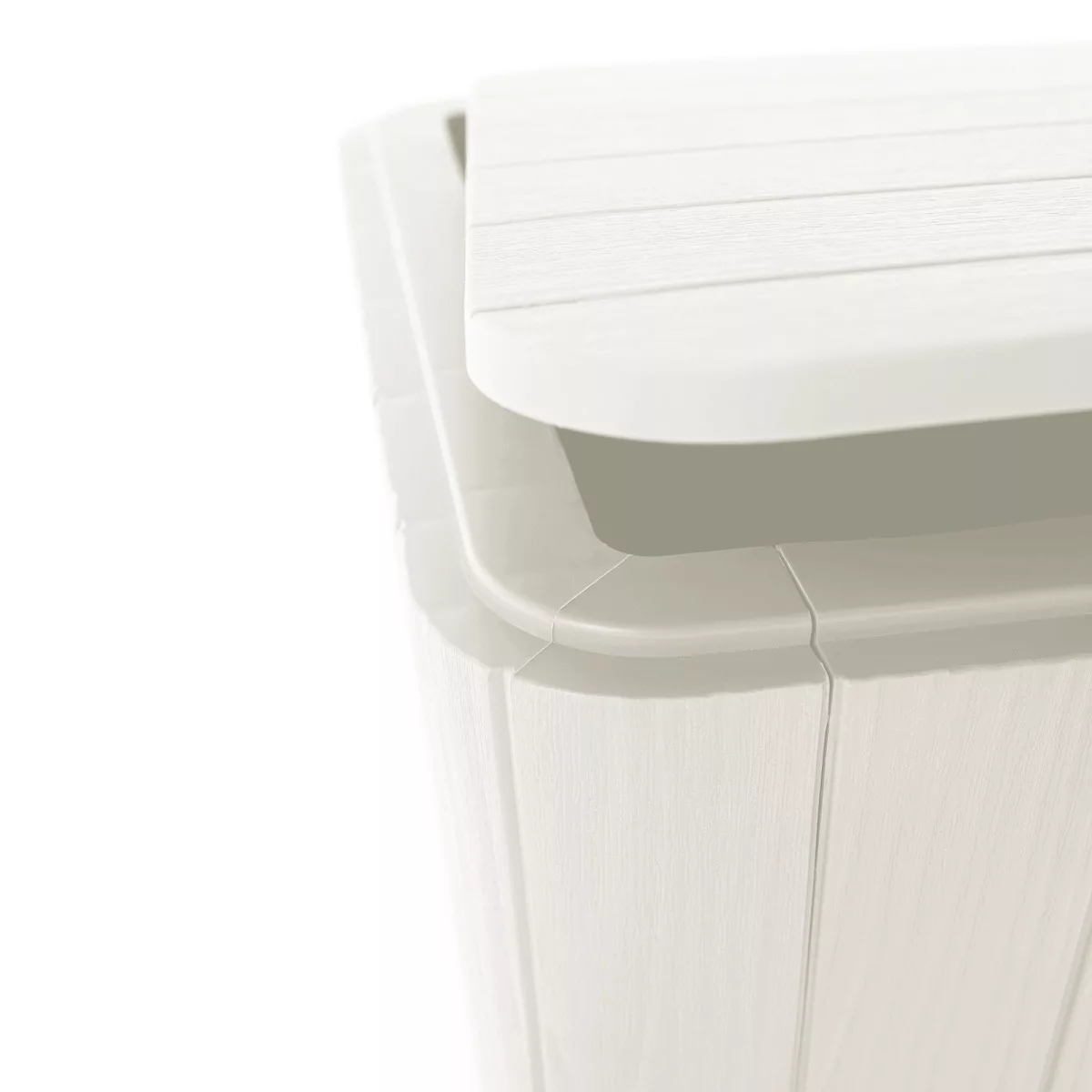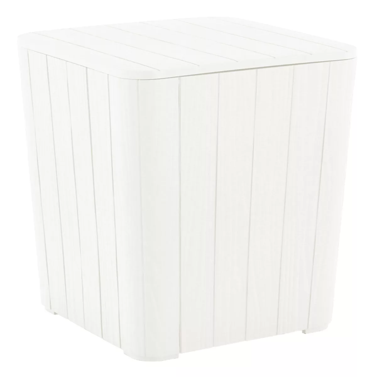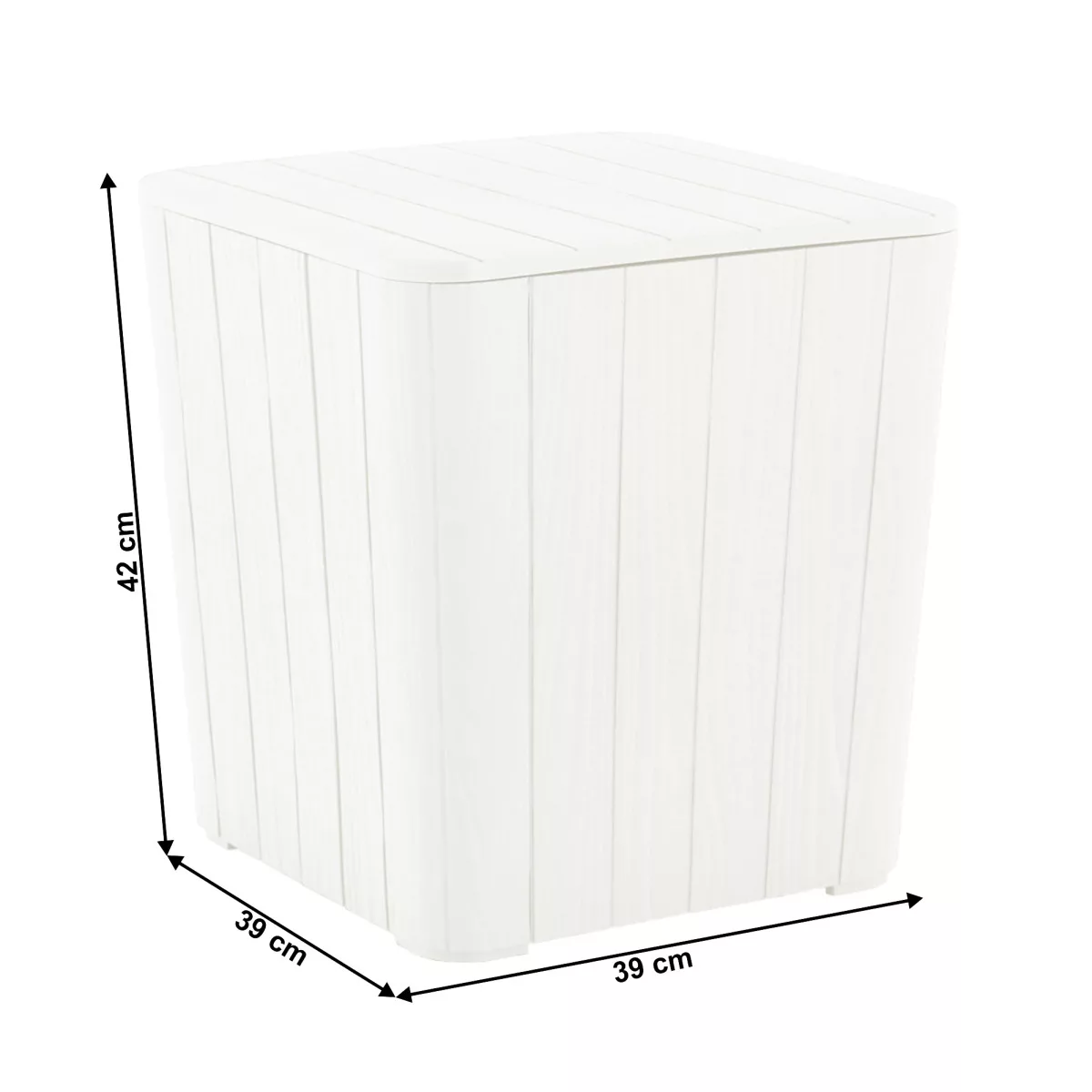 Az IBLIS első pillantásra egy modern, fa hatású kiegészítőnek tűnik, azonban strapabíró műanyagból készült, amely garantálja a hosszú élettartamot és az egyszerű karbantartást. Letisztult fehér színe és modern dizájnja révén szinte bármilyen stílusú terasz vagy erkély enteriőrjébe könnyedén beilleszthető, nem csupán tárolóeszközként, hanem stílusos bútordarabként is funkcionál. Képzeld el, ahogy a délutáni kávédat vagy egy frissítő italt helyezel el rajta, miközben a kedvenc könyvedet olvasod, tudva, hogy a takarók és párnák biztonságban pihennek a belsejében.