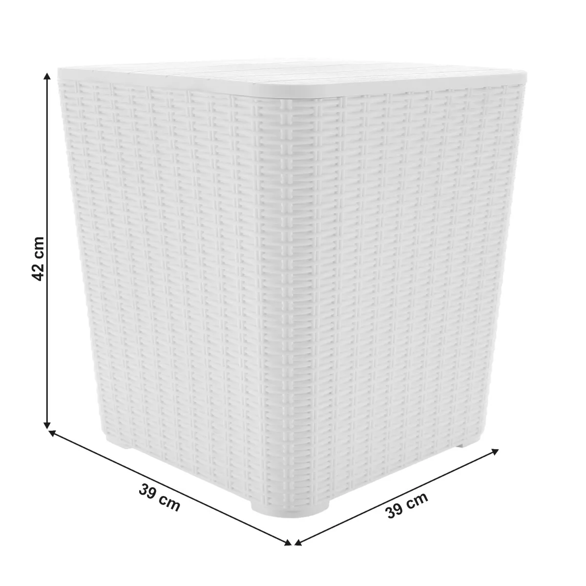 A városi erkélyek és fedett teraszok kihasználása gyakran kompromisszumot jelent a kényelem és a tárolás között. Az UGUR **fehér műanyagból** készült, **modern dizájnú tárolóláda** elegáns megoldást kínál erre a kihívásra. Ez a praktikus bútordarab nem csupán egy tároló, hanem egyben egy stílusos **kisasztal** is, így két alapvető funkciót egyesít egyetlen helytakarékos termékben. Tökéletes választás, ha egy rendezett és hívogató pihenőhelyet szeretnél kialakítani anélkül, hogy zsúfoltsággal kellene fizetned érte.