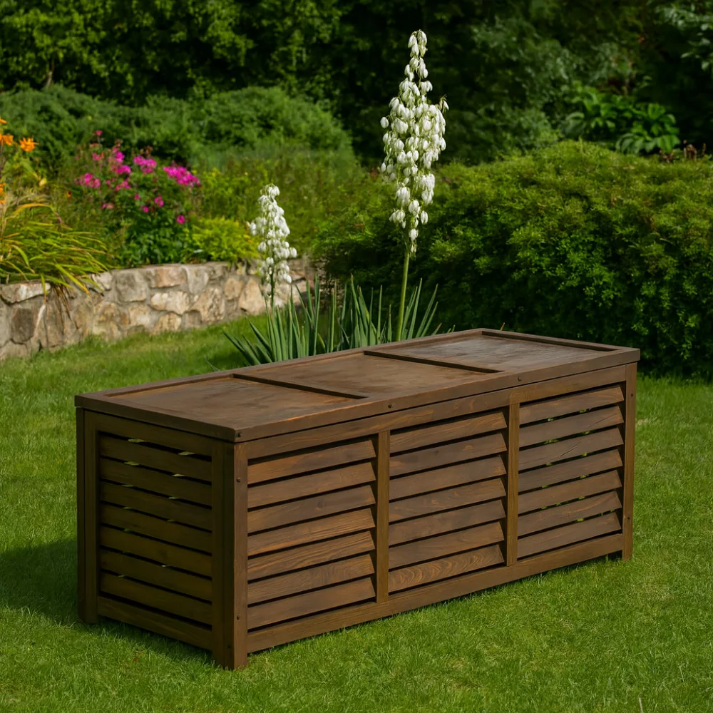 A rendezett kert vagy terasz a nyugalom szigete, de a szétszórt szerszámok, párnák és játékok könnyen megtörhetik ezt az idillt. Az LADAM kerti box egy olyan átgondolt kültéri tároló, amely nemcsak praktikus megoldást nyújt, hanem természetes szépségével emeli is a környezet hangulatát. Barna árnyalatú fenyőfából készült, így harmonikusan illeszkedik a zöldövezetbe, a dugattyús fedél pedig garantálja a könnyed és biztonságos használatot.