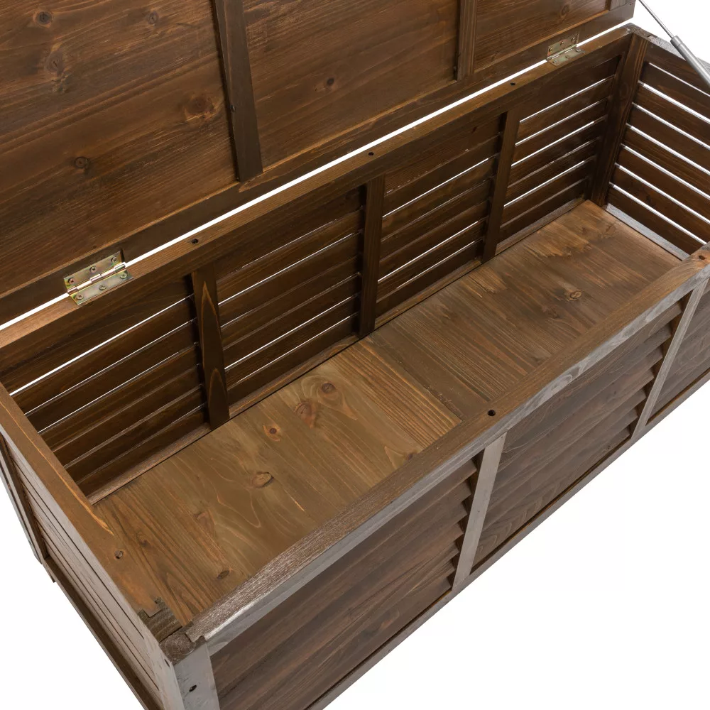 Ez a párnatároló és kerti szerszámos láda egyben ötvözi a modern és természetes dizájnt, így nem csupán egy tárolóeszköz, hanem a kert vagy a terasz stílusos kiegészítője is.