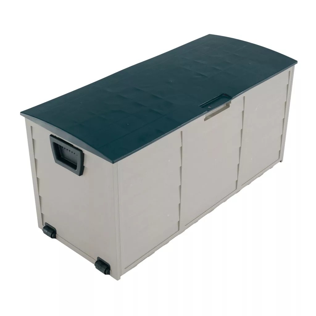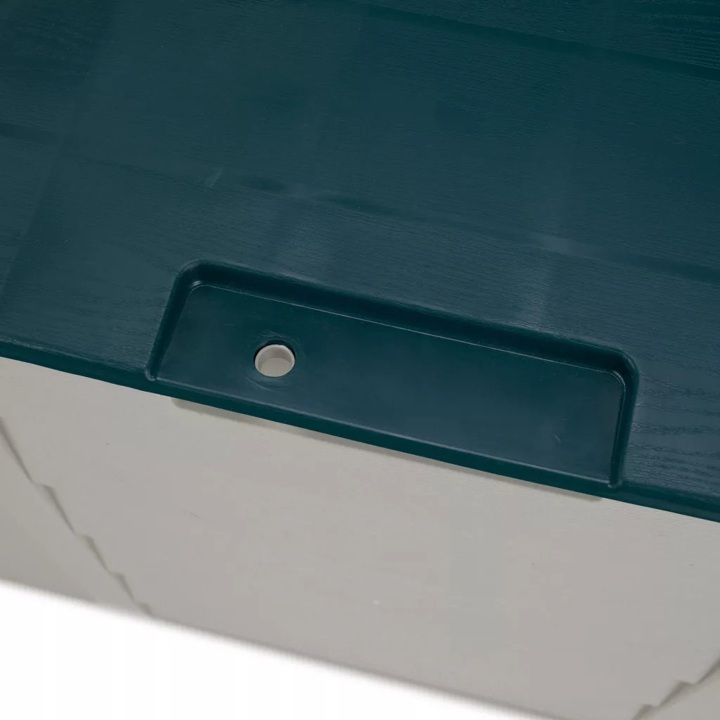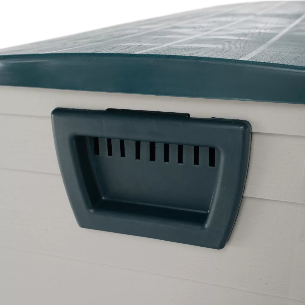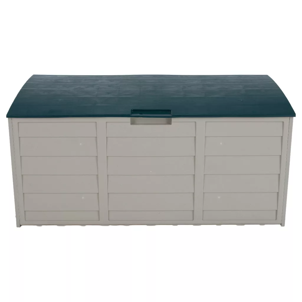 Ez a modern, szürke és zöld színkombinációjú kerti box nem csupán esztétikus, hanem rendkívül funkcionális is. A praktikus, lehajtható fedél gondoskodik a benne tárolt tárgyak védelméről, a biztonságot pedig a lakattal zárható mechanizmus fokozza (a lakat nem képezi a csomag részét). Ha a tárolóládát mozgatni szeretnéd, a süllyesztett fogantyúk és az egyik oldalon elhelyezett kerekek nagyban megkönnyítik a dolgodat. Kiválóan funkcionál párnatárolóként a kerti bútorokhoz, de ideális választás kerti szerszámos ládának is.