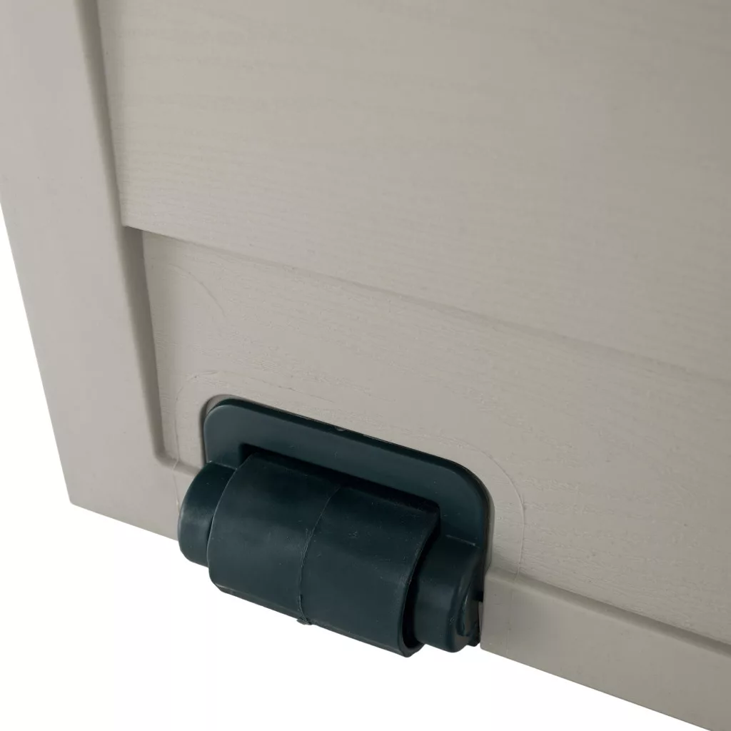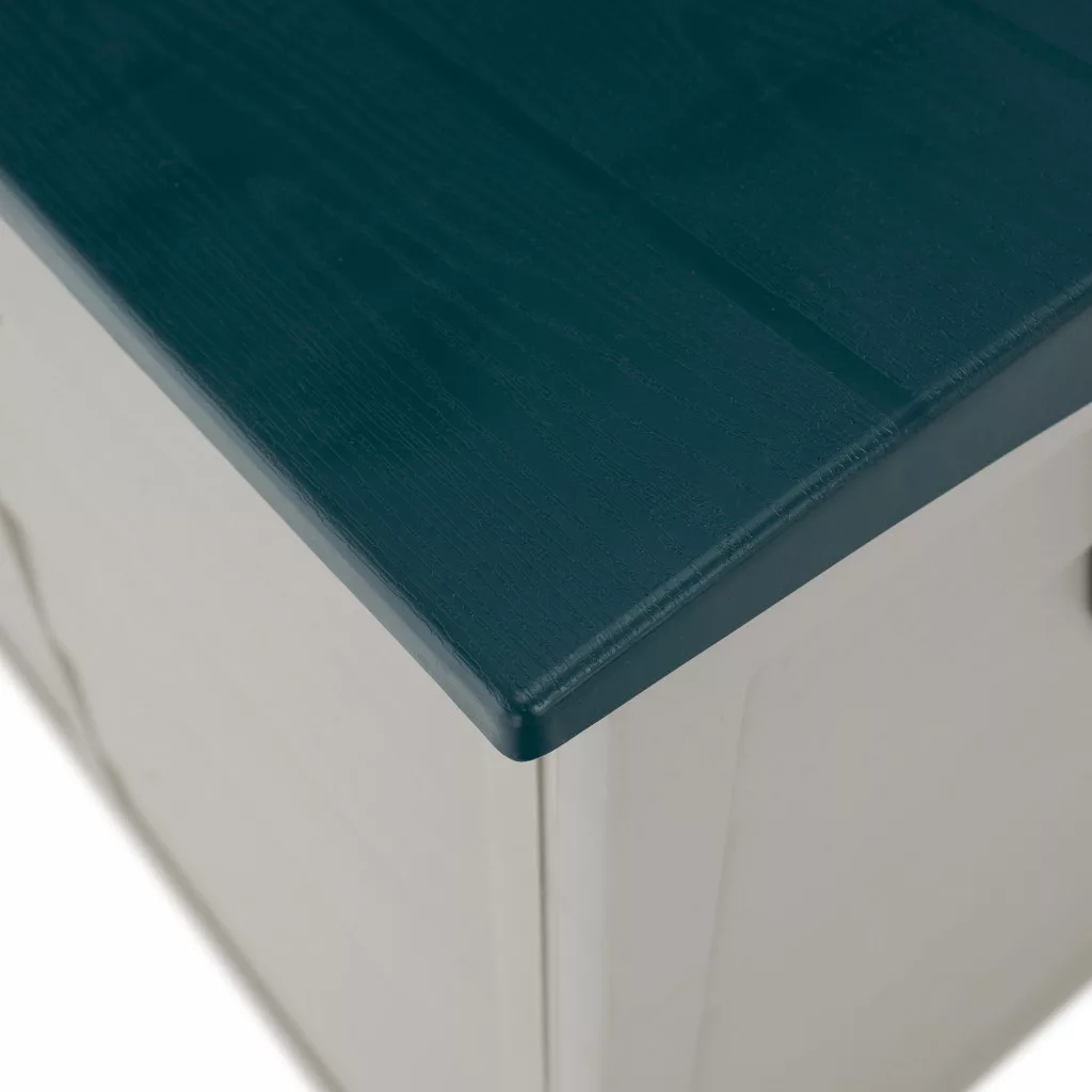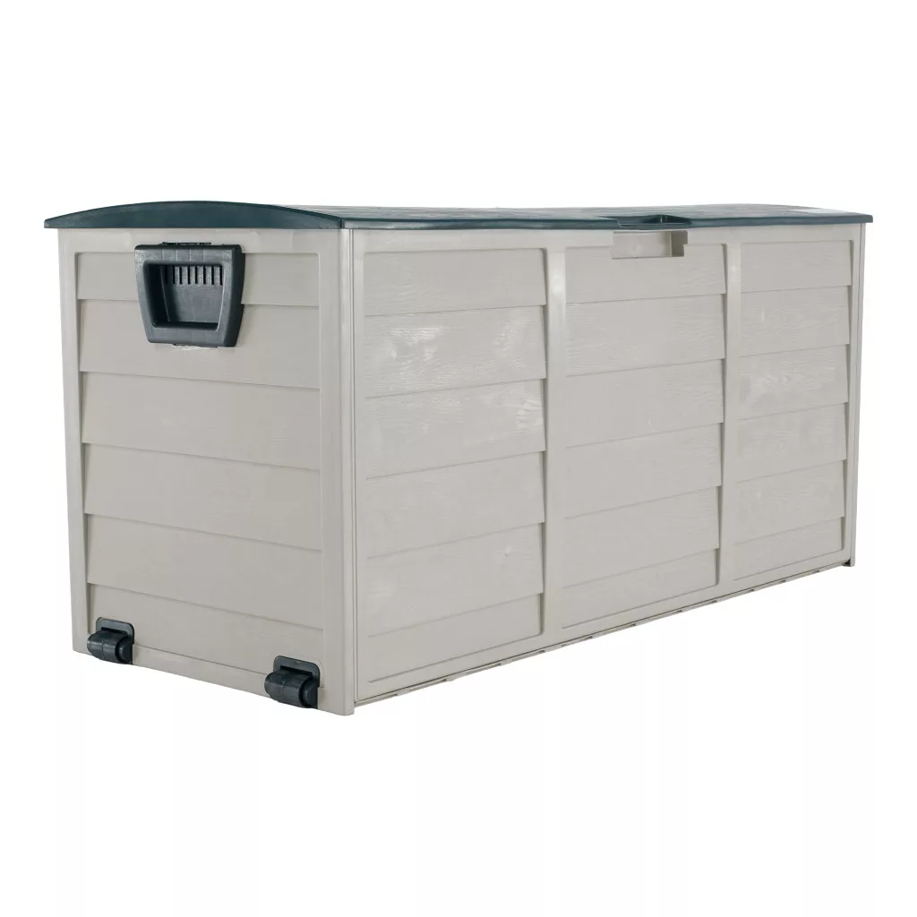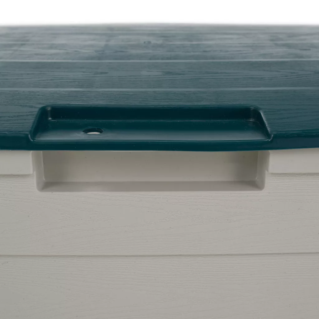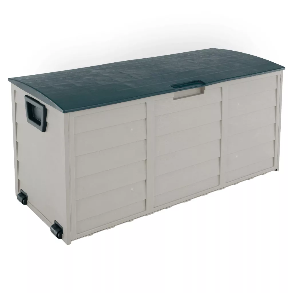 Ez a modern, szürke és zöld színkombinációjú kerti box nem csupán esztétikus, hanem rendkívül funkcionális is. A praktikus, lehajtható fedél gondoskodik a benne tárolt tárgyak védelméről, a biztonságot pedig a lakattal zárható mechanizmus fokozza (a lakat nem képezi a csomag részét). Ha a tárolóládát mozgatni szeretnéd, a süllyesztett fogantyúk és az egyik oldalon elhelyezett kerekek nagyban megkönnyítik a dolgodat. Kiválóan funkcionál párnatárolóként a kerti bútorokhoz, de ideális választás kerti szerszámos ládának is.