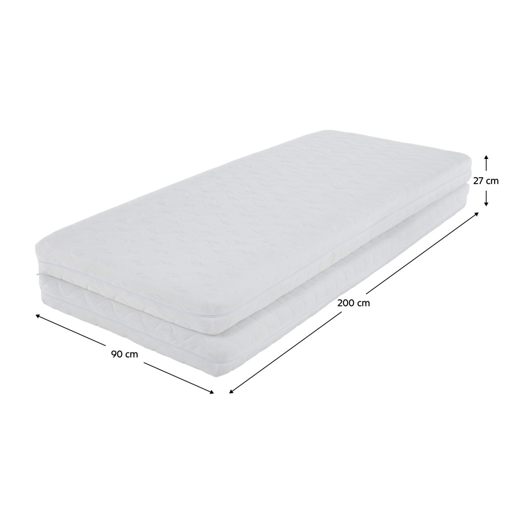 Az AMELK matracot a praktikus otthonok igényeire szabtuk. Összecsukott állapotban egy 90x200 cm-es, 27 cm magasságú fekhelyet biztosít, ám kinyitva két matracot kapsz, megnövelve az alvófelületet egy tágas 180x200 cm-es méretre, 13,5 cm-es magassággal. Ez a megoldás ideális választás például a kihúzható ANTONY ágyba. A higiéniáról a levehető huzat gondoskodik, amely egyszerűen, 40°C-on mosható.