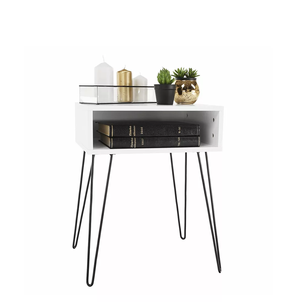 Gyakran szembesülsz azzal a kihívással, hogy egy bútor egyszerre legyen esztétikus és funkcionális, ráadásul több helyiségben is megállja a helyét? A HONEJ éjjeli asztal és kisasztal egyben kínál elegáns megoldást erre a problémára. A minőségi, fehérre lakkozott MDF lap és a stabil, fekete fém lábak kontrasztja modern, letisztult megjelenést kölcsönöz neki, amely szinte bármilyen enteriőrbe könnyedén beilleszthető.