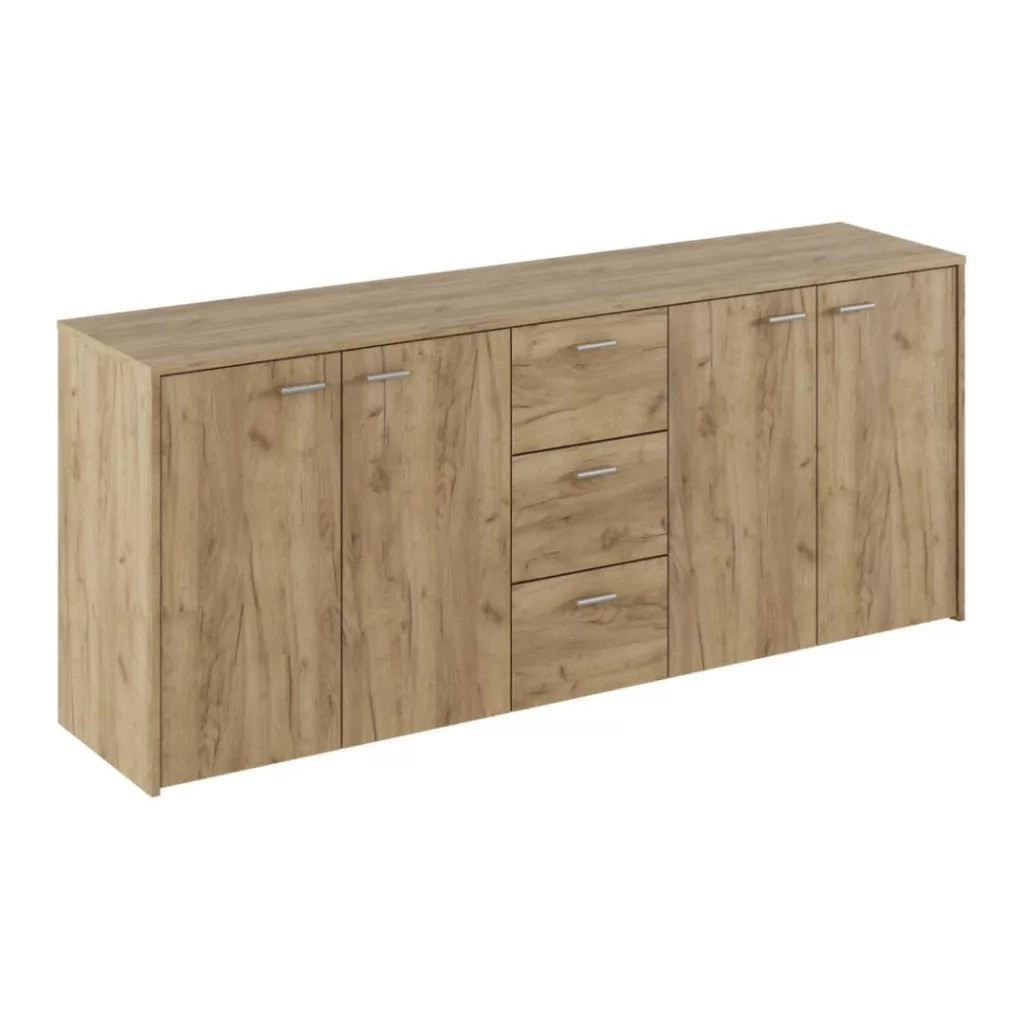 A HUGOS komódot a funkcionalitás jegyében terveztük. A tágas belső teret négy ajtó mögötti polcos részek és három fiók alkotja, így ideális választás, legyen szó ruhák, dokumentumok vagy egyéb személyes tárgyak rendezett elhelyezéséről. Ez a sokoldalú ruhás komód segít átláthatóvá tenni a dolgaidat, hozzájárulva otthonod harmóniájához. A minimalista dizájnt az ezüst színű műanyag fogantyúk teszik teljessé, amelyek kényelmes és egyszerű használatot biztosítanak. A minőségi, 1,6 cm vastagságú laminált DTD anyag garantálja a bútor tartósságát és időtállóságát, így hosszú távon számíthatsz rá.